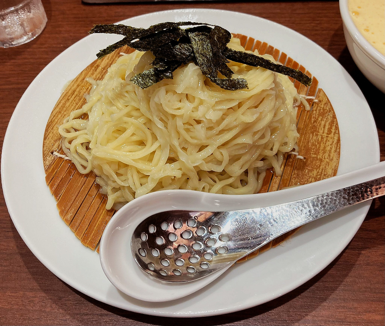- 이곳에서 제공하는 라멘의 경우 육수에 면을 넣은 일반적인 '라멘' 도 있지만 육수와 면을 따로 제공해 마치 '츠케멘' 처럼 제공하는 '자루라멘' 도 있는데 '자루라멘' 에 사용하는 면은 뜨거운 물에 면을 데친 뒤 찬물에 다시한번 넣어 쫄깃한 맛을 만들어내고 있습니다. 이곳에서 라멘에 사용하는 면은 기본적으로 240g을 제공하는데 일반적으로 후쿠오카에서 제공하는 양인 100~150g 보다 양이 많은 편이라 면의 양을 줄인 라멘도 판매하고 있으며 아침에는 '닭 뼈' 육수를 활용한 '죽' 을 아침메뉴로 판매하고 있는 것도 인상적이었습니다.