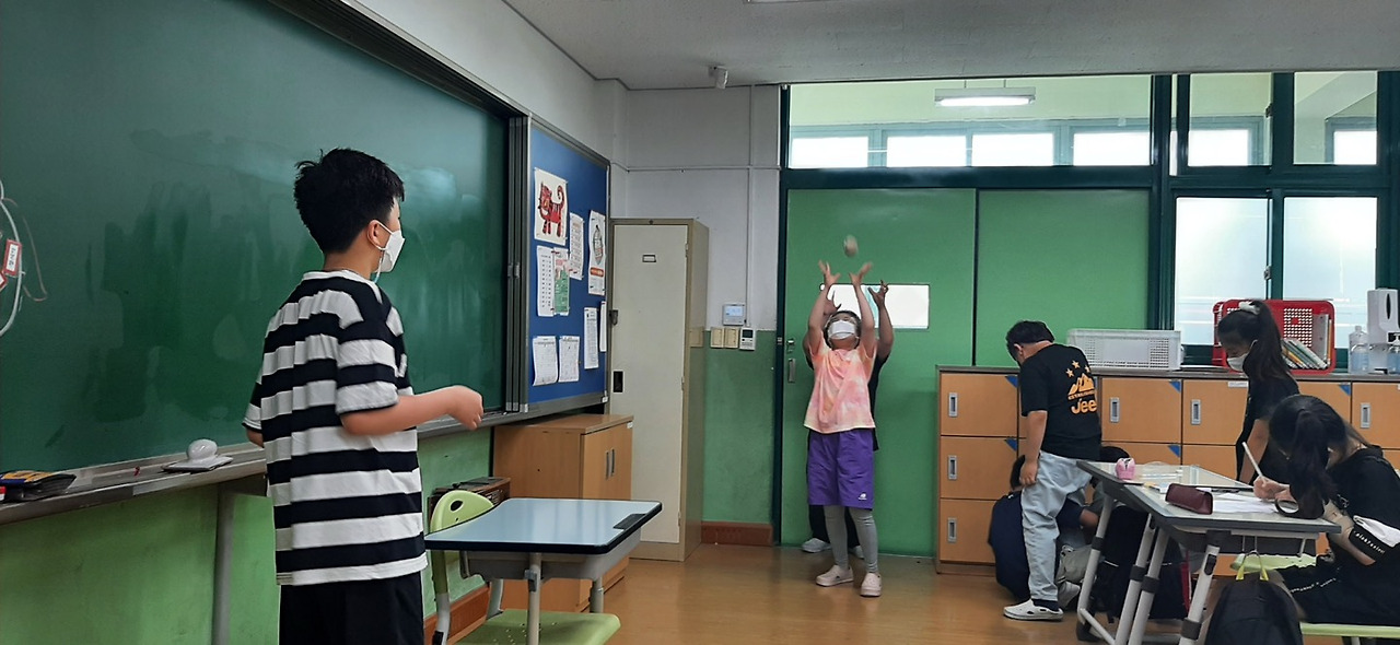쉬는 시간에 공이 교실을 날아다니고 있다. 공이라고 부르지만 천으로 만든 동그란 인형이다. 폭신한데 모래 같은 것이 들어 있어 적당한 무게감이 있고 촉감이 좋다. 이것은 시후의 공이라서 시후만 가지고 놀 수 있는 것이다.