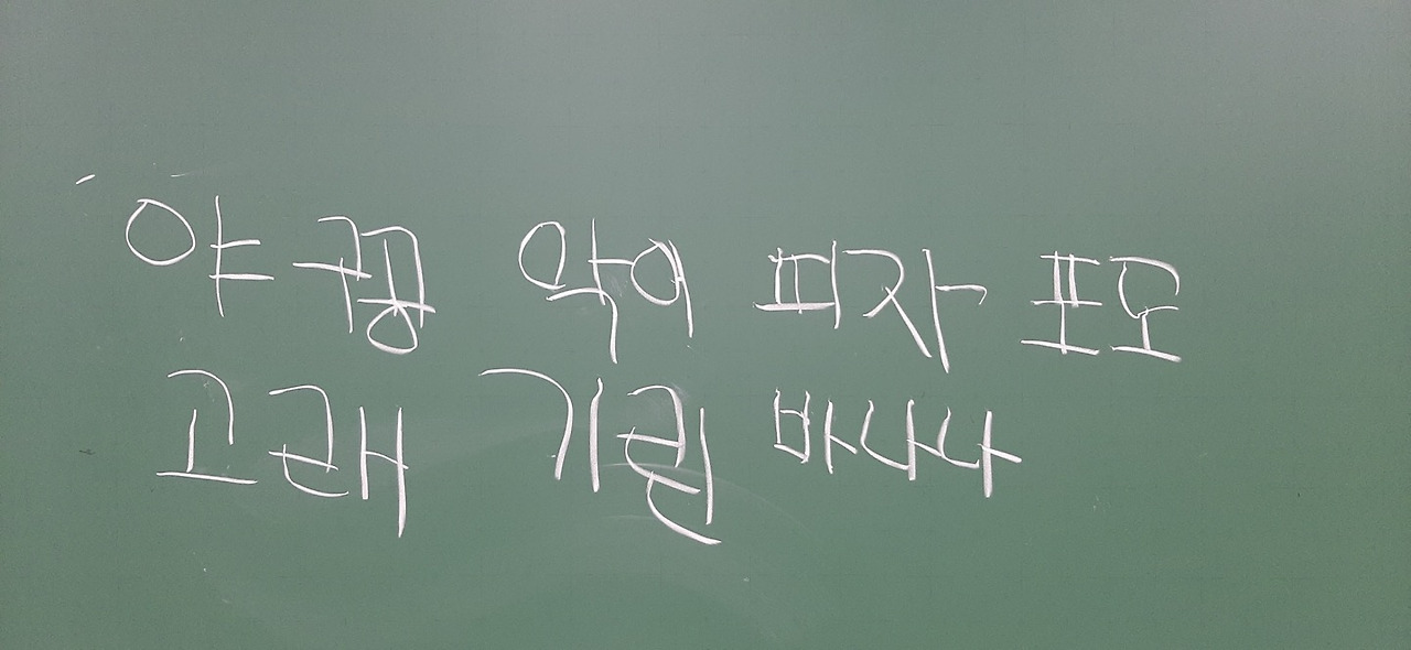 시후가 글자를 알면 의사소통을 할 수 있을 거라고 생각하고 여러 방법으로 글자 공부를 시켰다. 쓸 수 있는 낱말은 칠판에 나와서 받아쓰기를 했다. 아이들이 우와 - 낱말을 따라 읽으며 응원해 주고 잘 썼다고 박수를 쳐주었다.