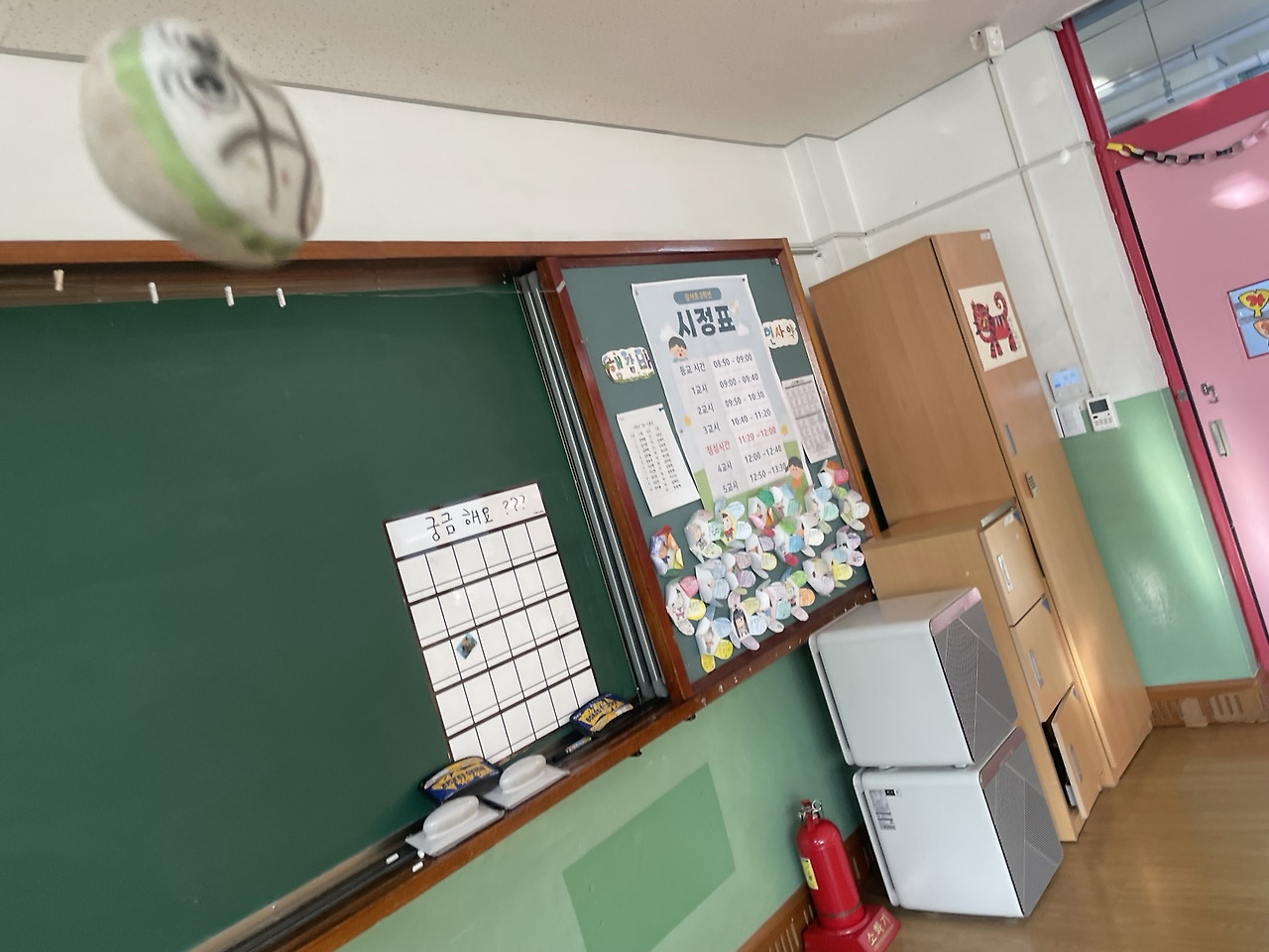 수업 시간엔 내 책상 위에 공을 얹어 놓는데 가만 보고 있다가 쉬는 시간 종이 울리면 재빨리 나와 공을 가져갔다.