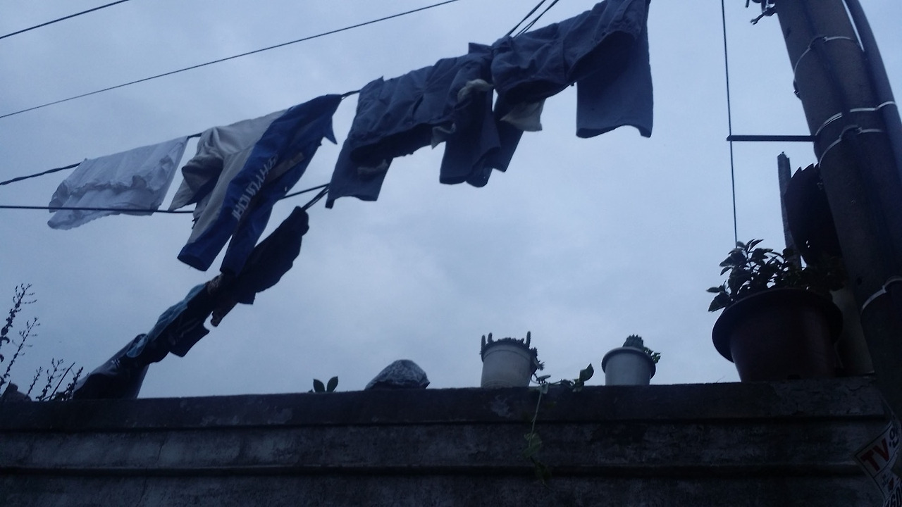 피곤한 하루를 끝내고 낮설어진 골목길을 걸어 왔을 빨랫줄에 펄럭이는 작업복.