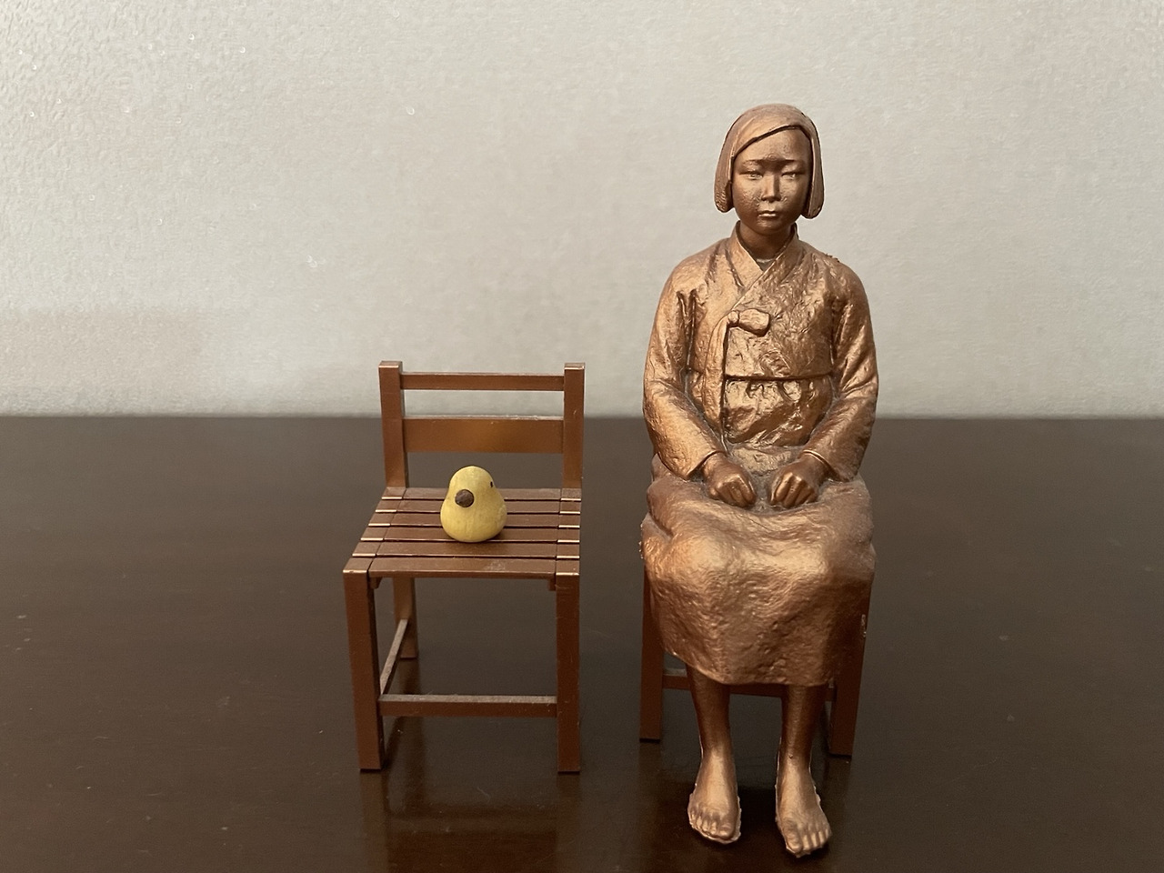 소녀상은 아무 말 없이 조금은 슬픈 표정을 지었어요.