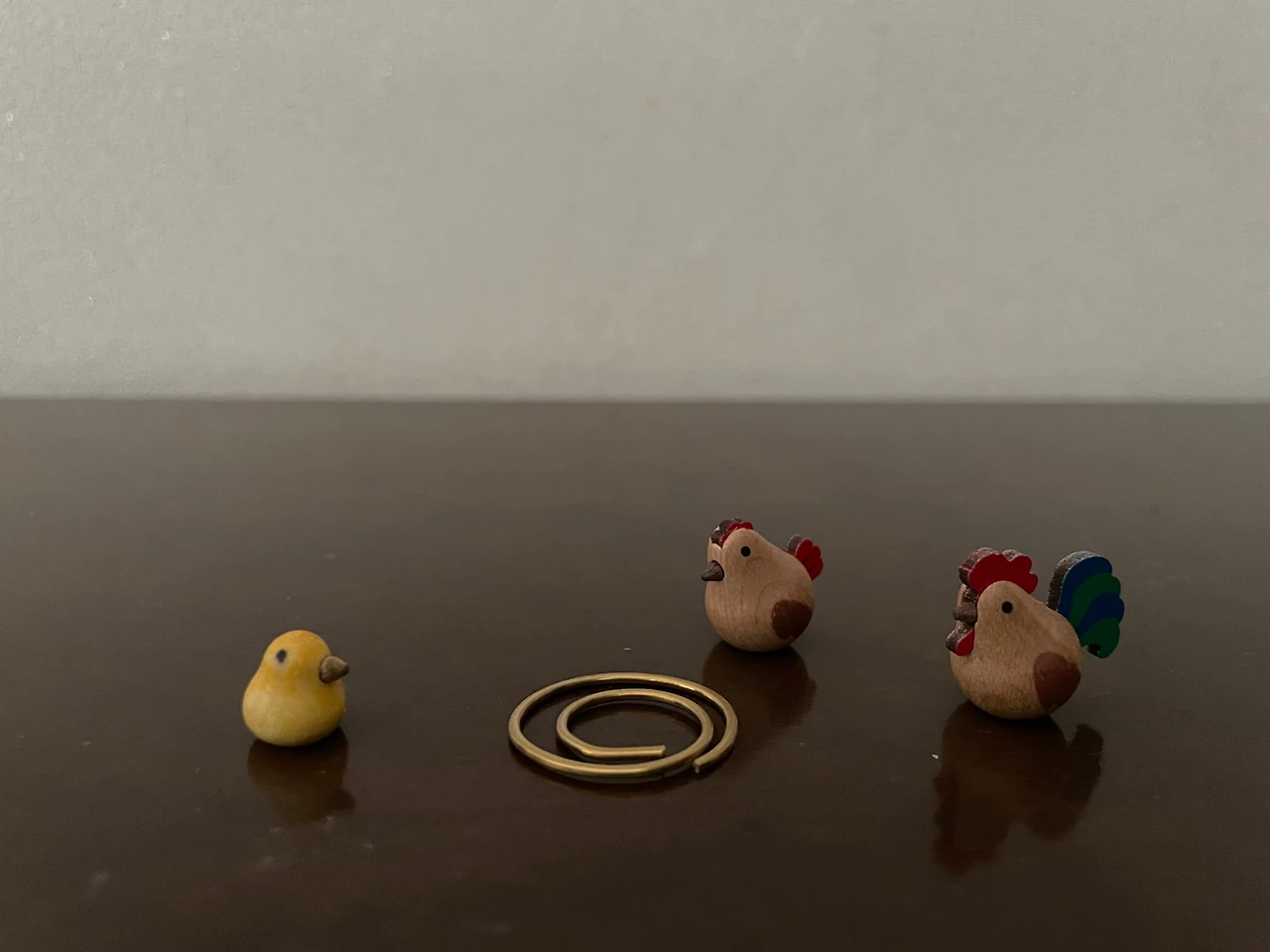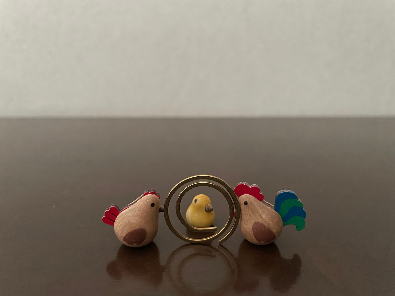 아빠가 또아리 튼 물건을 콕콕 쪼아 보았어요.
