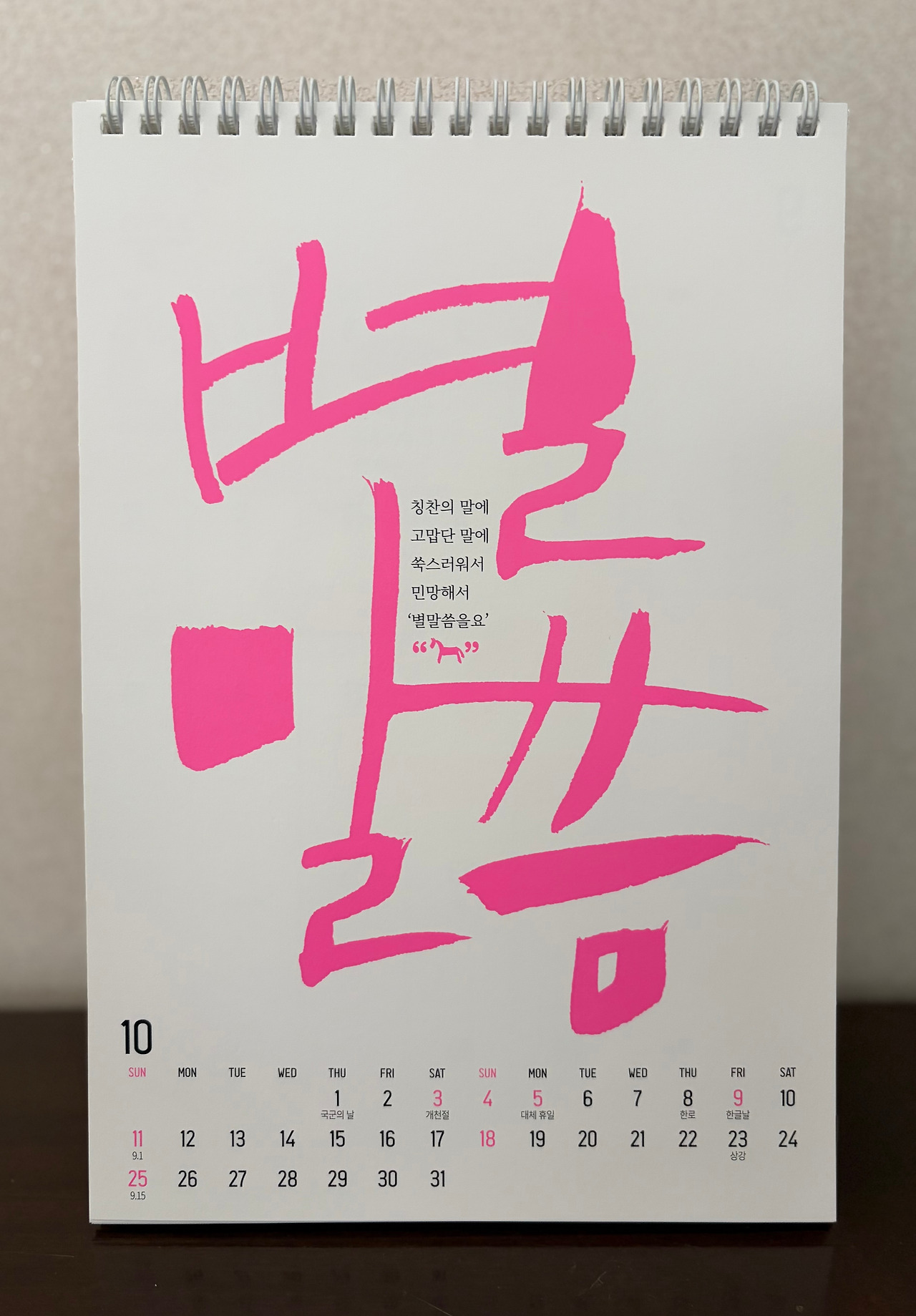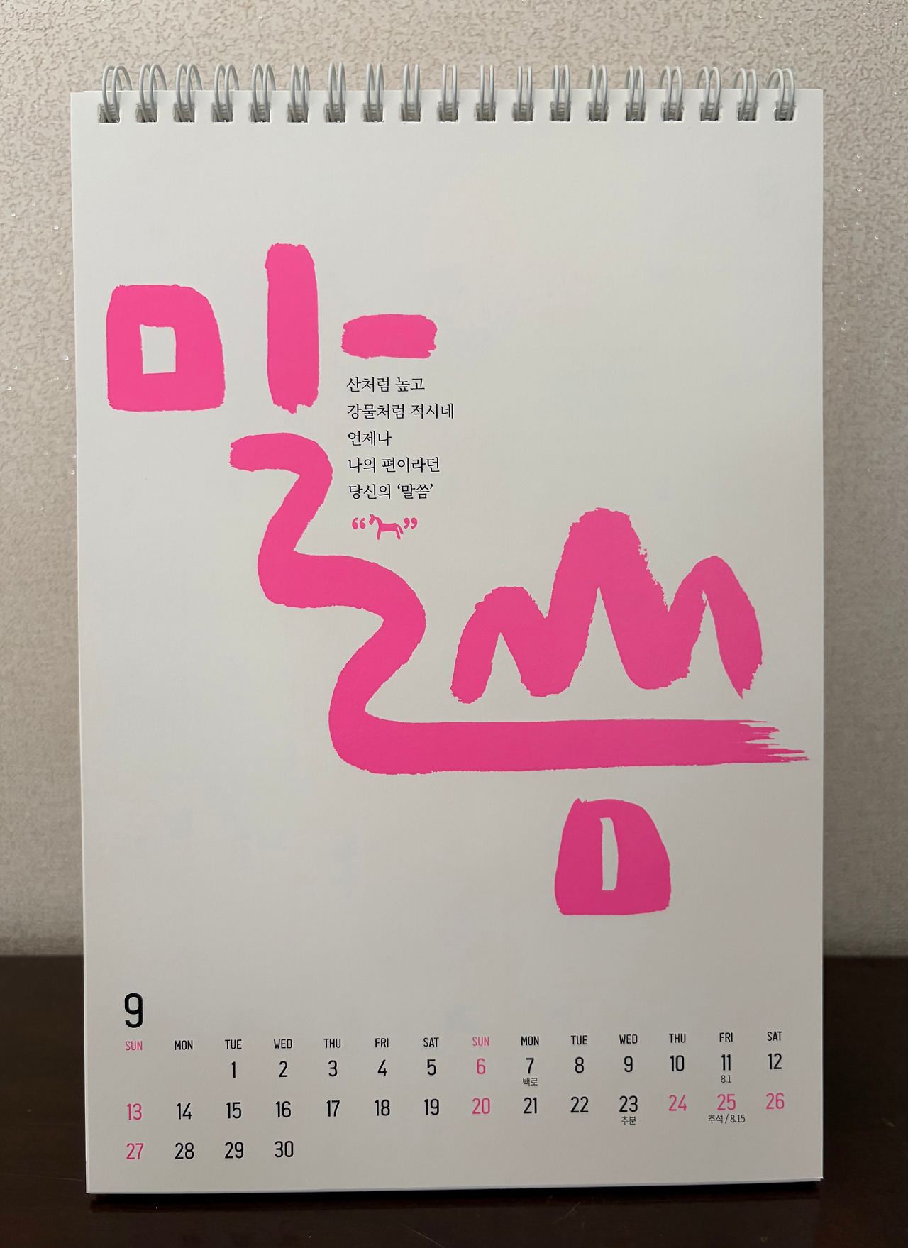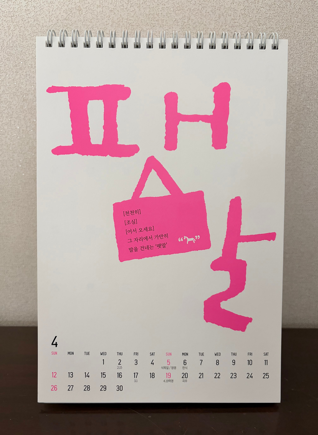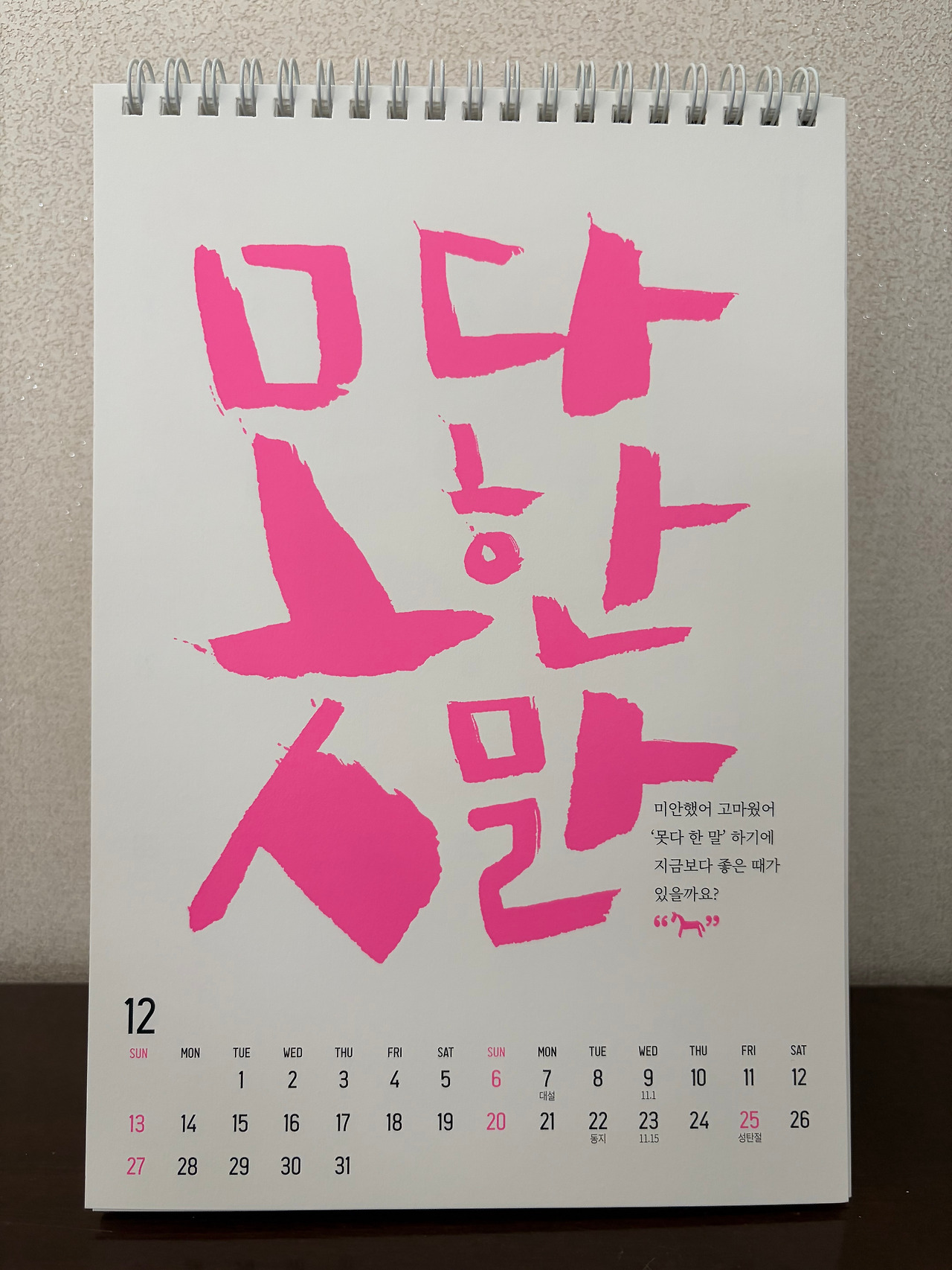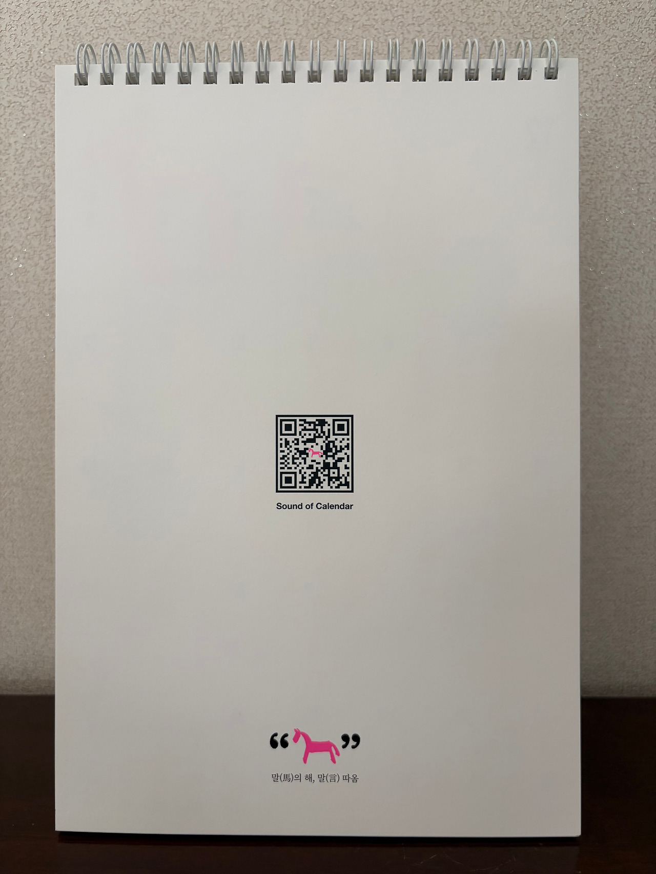 올해는 맨 뒷장에 달력에 쓰인 말로 만든 노래와 영상 큐알코드를 넣었습니다.