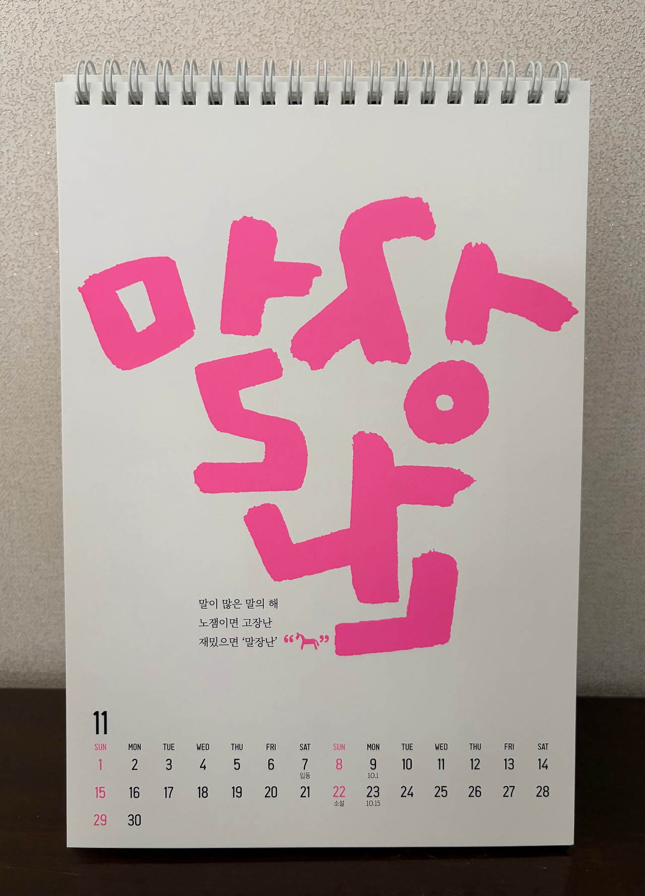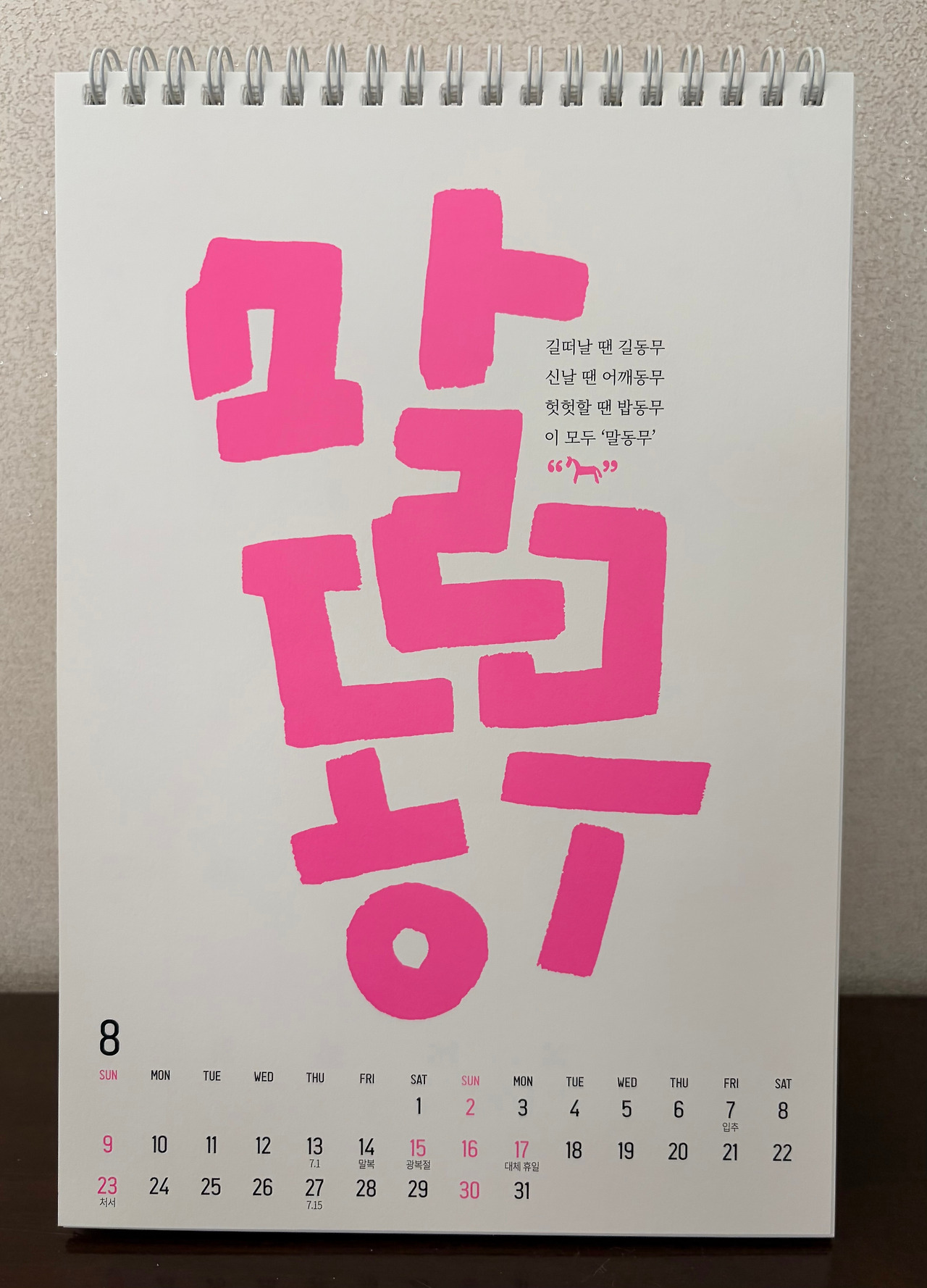 말(馬)의 해 말(言)에서 따온 말에 관한 말들을 쓴 말 달력입니다.