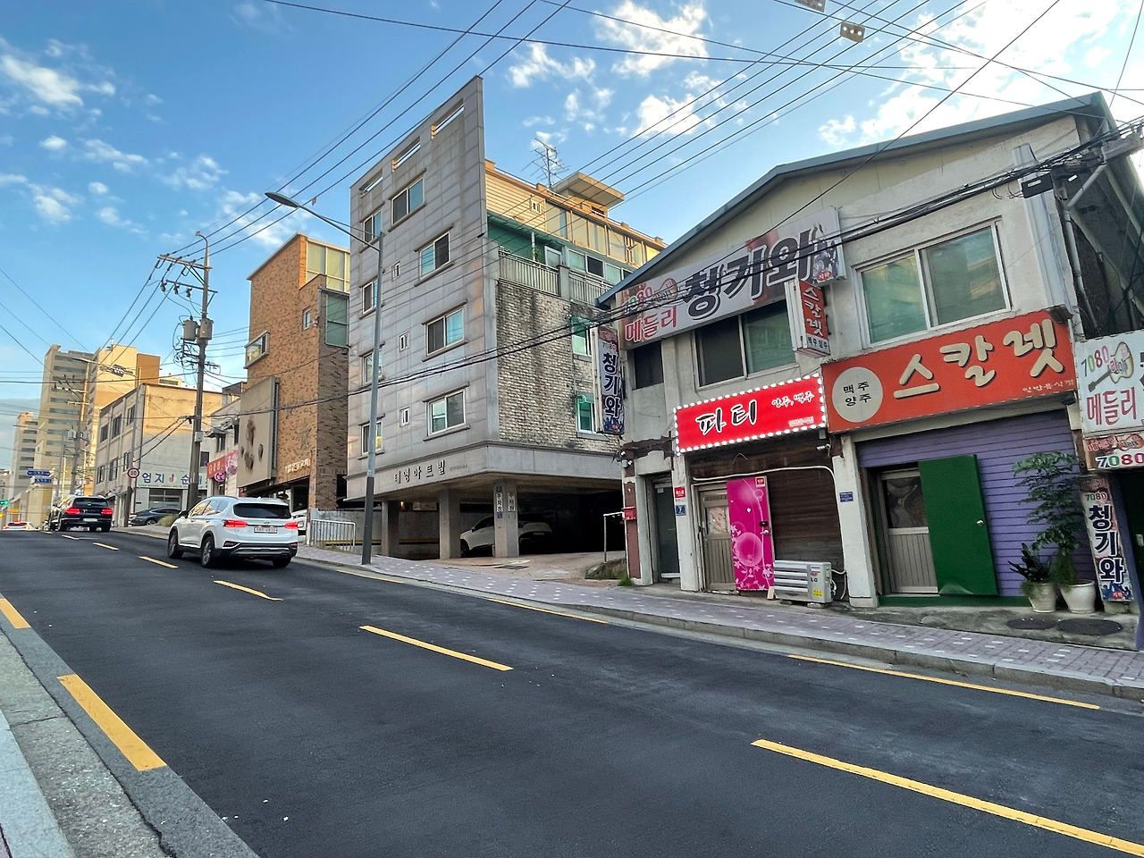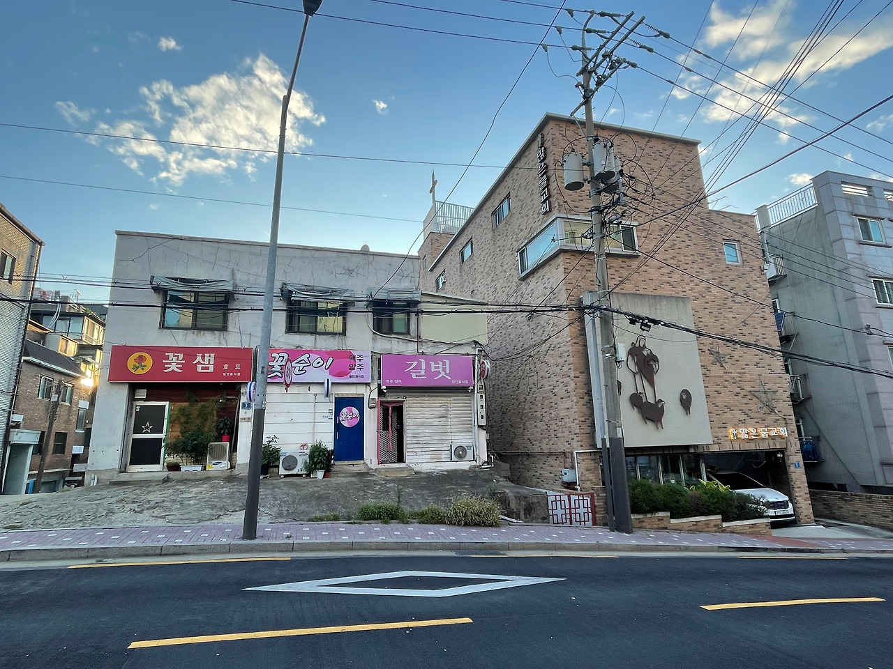그 간판들 사이에 들어선 깔끔한 4층 새 건물.