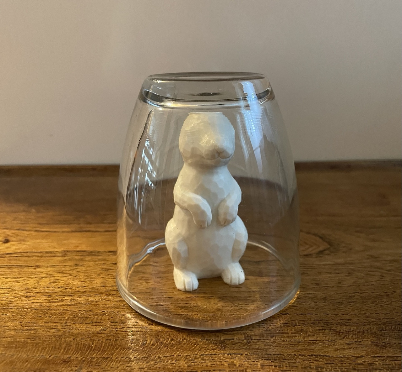 다음날 아침, 내 눈에 들어온 이상한 새 인형 - 남편의 토끼 왜 이래? 그 말이 무슨 말인지 바로 깨달았다. 토끼가 유리컵 속에 갇혀 있었다. 주걱 없이. 성질 급한 나는 어제 들어오면서 현관 입구 장 위에 올려 어 놓은 토끼를 못 봤던 것이다.