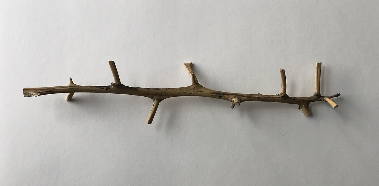가시를 끝을 잘라 내고 눕히면 서너 개 서러 어긋난 가시 끝이 발이 되어 바닥에 중심을 잡는다. 붓으로 글씨를 많이 쓰는 남편 책상 위에 자리 잡고 붓 베개로 쓰이고 있다.