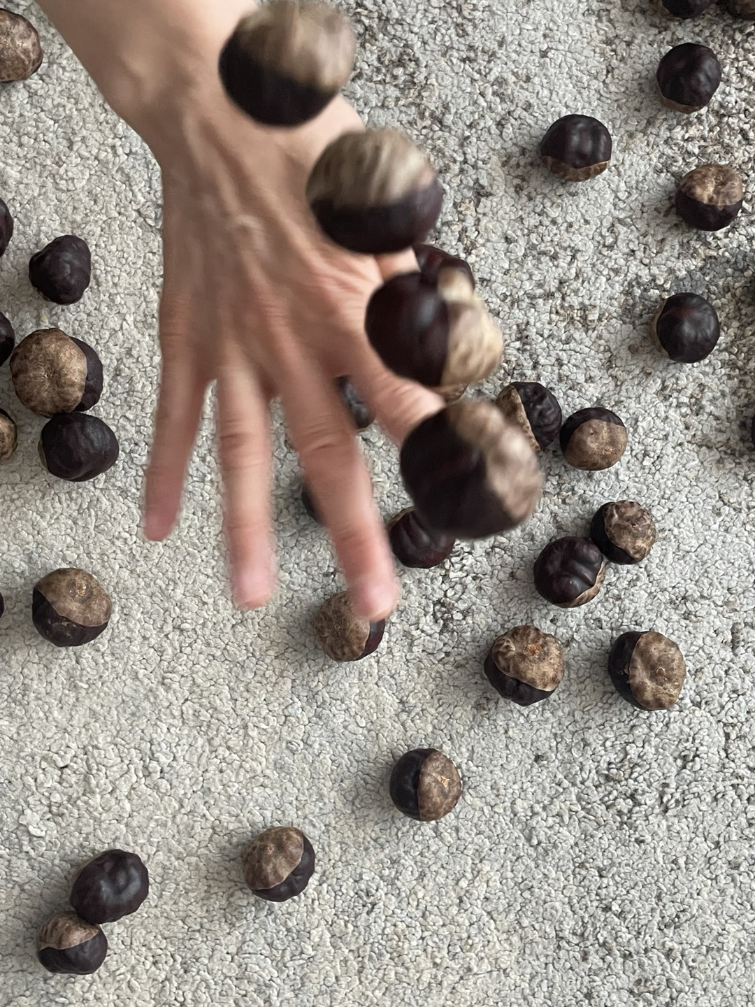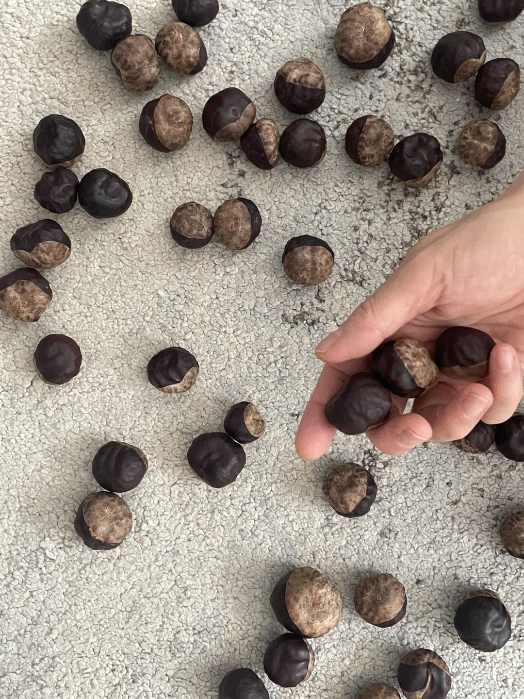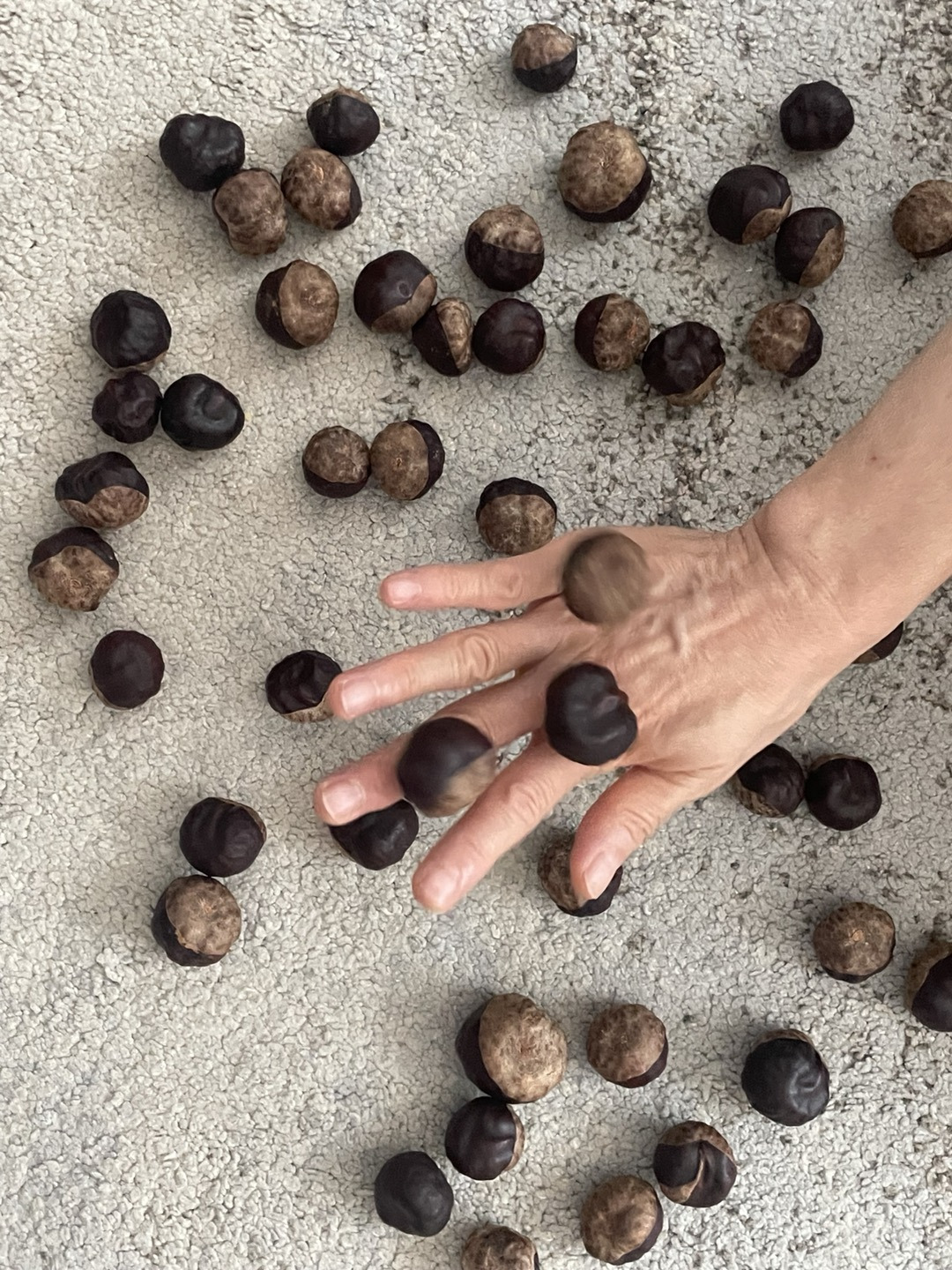 집 앞에 공원이랄 것도 없는 버려진 작은 공터에 칠엽수 나무 한그루가 있는데 가을에 그 나무 밑에 떨어진 열매가 너무 똘똘해서 한가득 주워왔다. 처음엔 신기해서 한 두 개만 주우려 했는데 나도 모르게 열매를 따라가며 자꾸 줍게 되었다. 먹지도 못하는 것 뭐 하려고 그렇게 많이 줍느냐 그만 주워라 잔소리를 들었지만 주머니가 가득 묵직한 게 부자 된 기분이었다.