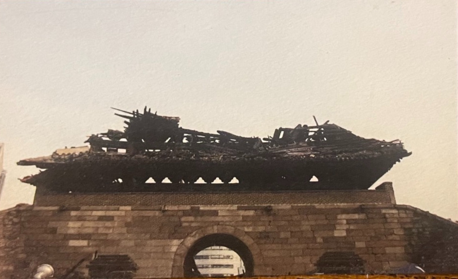 2008년 2월 10일 저녁에 방화범에 의해 불이 난 남대문은 다음날까지 타서 전소되었다.