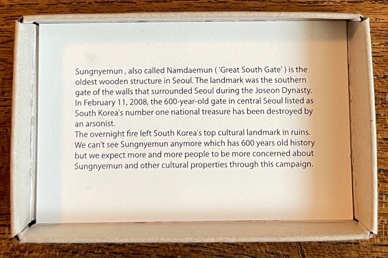 새로 지은 남대문은 더 튼튼하고 더 좋은 나무로 지었으니 앞으로 천년 이천년 우리 모두의 마음의 문으로 살 것이다.