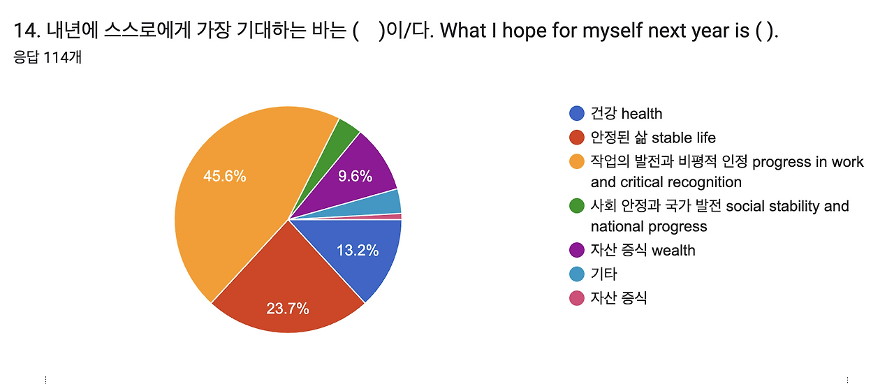 전반적으로는 내년, 지금 시점에서는 올해 더 나은 지원 체계와 창조적 작업의 기회, 건강한 작업 환경을 기대하는 경향이 강했습니다.