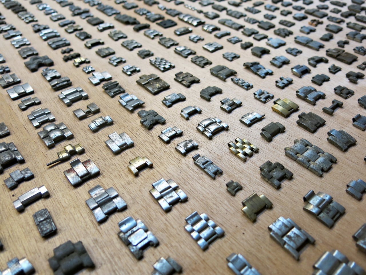 Instead of asking more questions we decided to take a look at the trajectory of his work for the past decade. I already looked through his rather large portfolio, but it simply consisted of images, titles and captions. His work is not sleek and shiny. In other words, they aren’t readily consumable visual products. They were objets of demolition and deconstruction rather than of production and construction. They evoke paradoxical imagery of chill winds blowing in the ruins. Well organized dust mounds, cracked walls, a pile of steel frames that look minutes away from disintegrating. I arrived at his studio firmly decided on two linguistic and visual characteristics. First of all is his subtle gray humor. It wasn’t dark and piercingly witty black humor. His works Lost Time (2016), segments of metal straps taken from old watches collected from the streets, and Easyart (2016) a slab of roughly sculpted polyurethane foam reflect his sense of humor well. Hints for reading into the artist’s daily space and objects can be found in his language used in his large-scale text work titled Greve (Strike) (2011). As such, examining the shape, substance, contrast and paradox in arrangement in relation to the images and titles of his work help in understanding the artist’s past works.