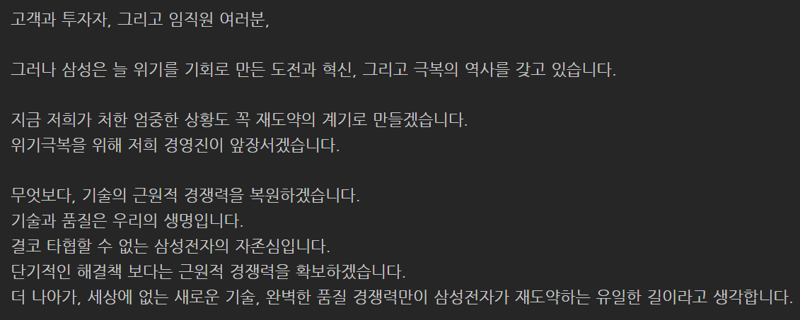 과연 전영현 부회장의 사과문에서처럼 삼성전자가 기술 경쟁력을 복원하고 브랜드 가치를 지키면 다시 부활의 날갯짓을 할 수 있을까.
