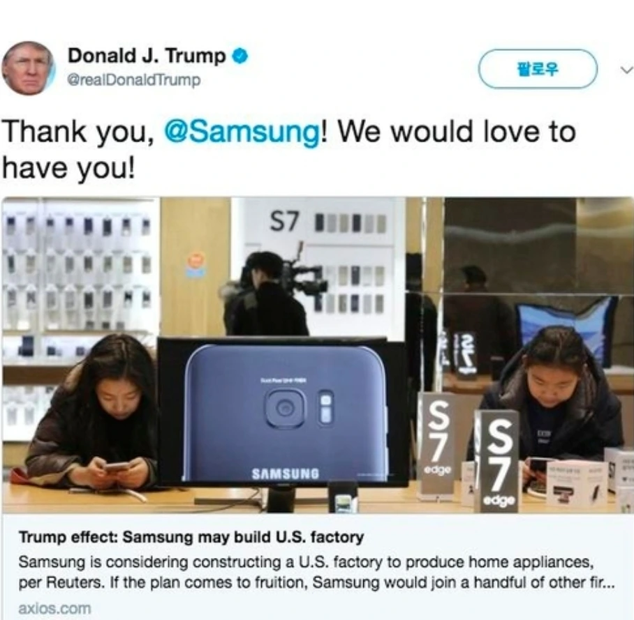 그런데 여기서 분명히 짚고 넘어갈 점은 코스피지수의 등락이나 삼성전자 주가의 등락에서 트럼프 대통령이 직접적으로 영향력을 행사한 부분은 거의 없다는 사실이다.