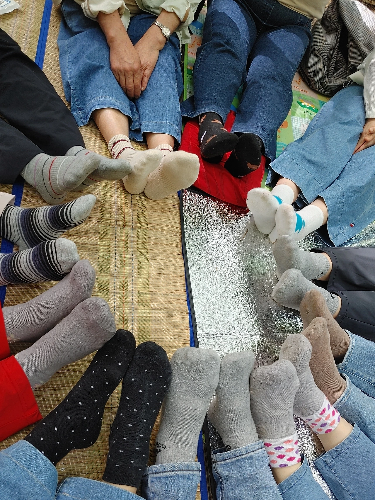 다시 평상으로 돌아와 과일파티를 했다. 둥그런 수박의 달콤함은 금방 바닥을 보일만큼 맛있었다. 참외와 가지포도는 맛을 봤지만 결국 망고는 선물이 되어 각자 하나씩 나눠가져야 했다. 숲이 주는 편안함에 어릴 때 했던 게임도 하면서 동문들의 우정은 더 돈독해졌다. 가장 젊은 후배가 60세이고 대선배가 80대이니 참 신비로운 구성이다. 다양한 구성원들이 같은 길을 걷는다는 걸로 소통이 원활하다. 때마침 대선배님이 시집을 출판하여 선물로 증정해 주니 한 페이지씩 넘기면서 시낭송까지 이어졌다.
