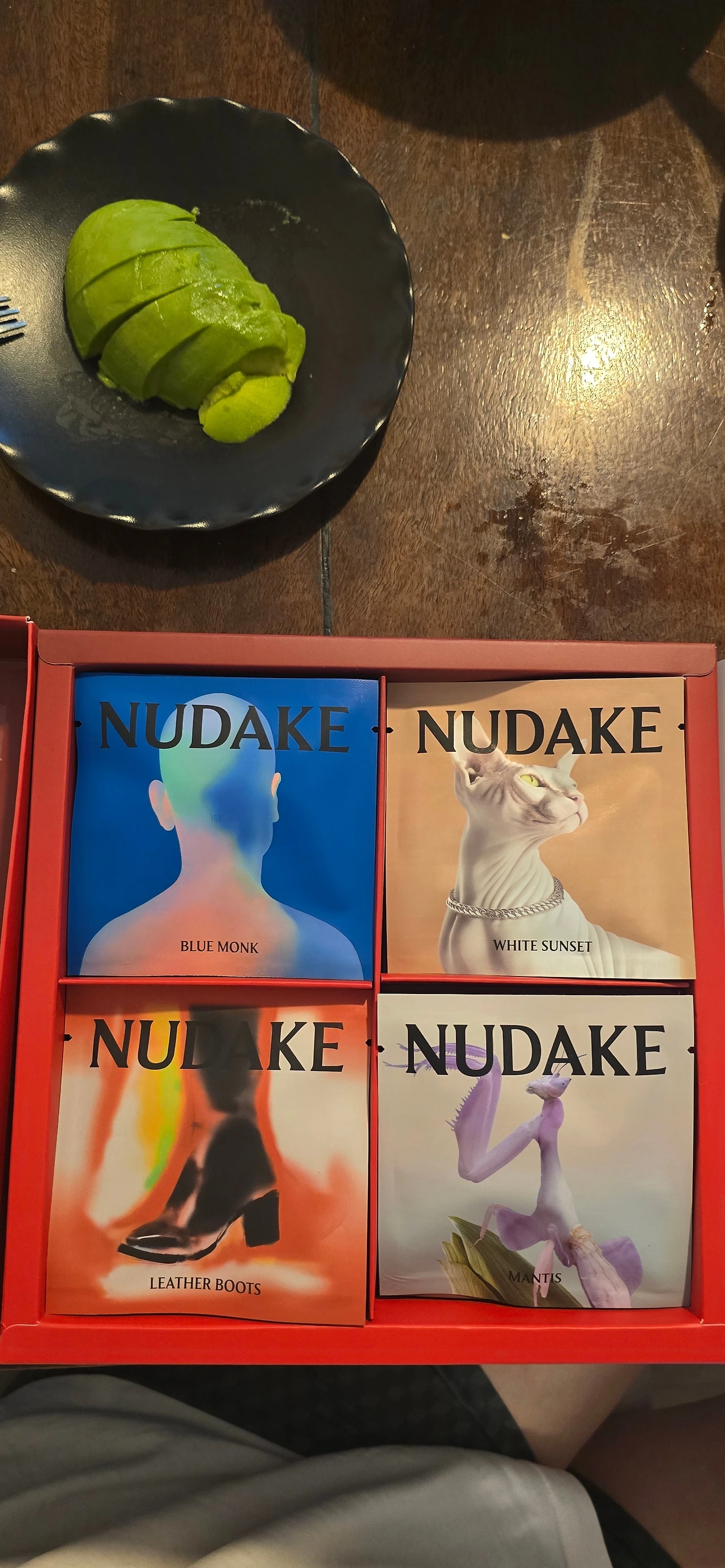 자기 방에 들어가 빨간 상자 하나를 들고 와선