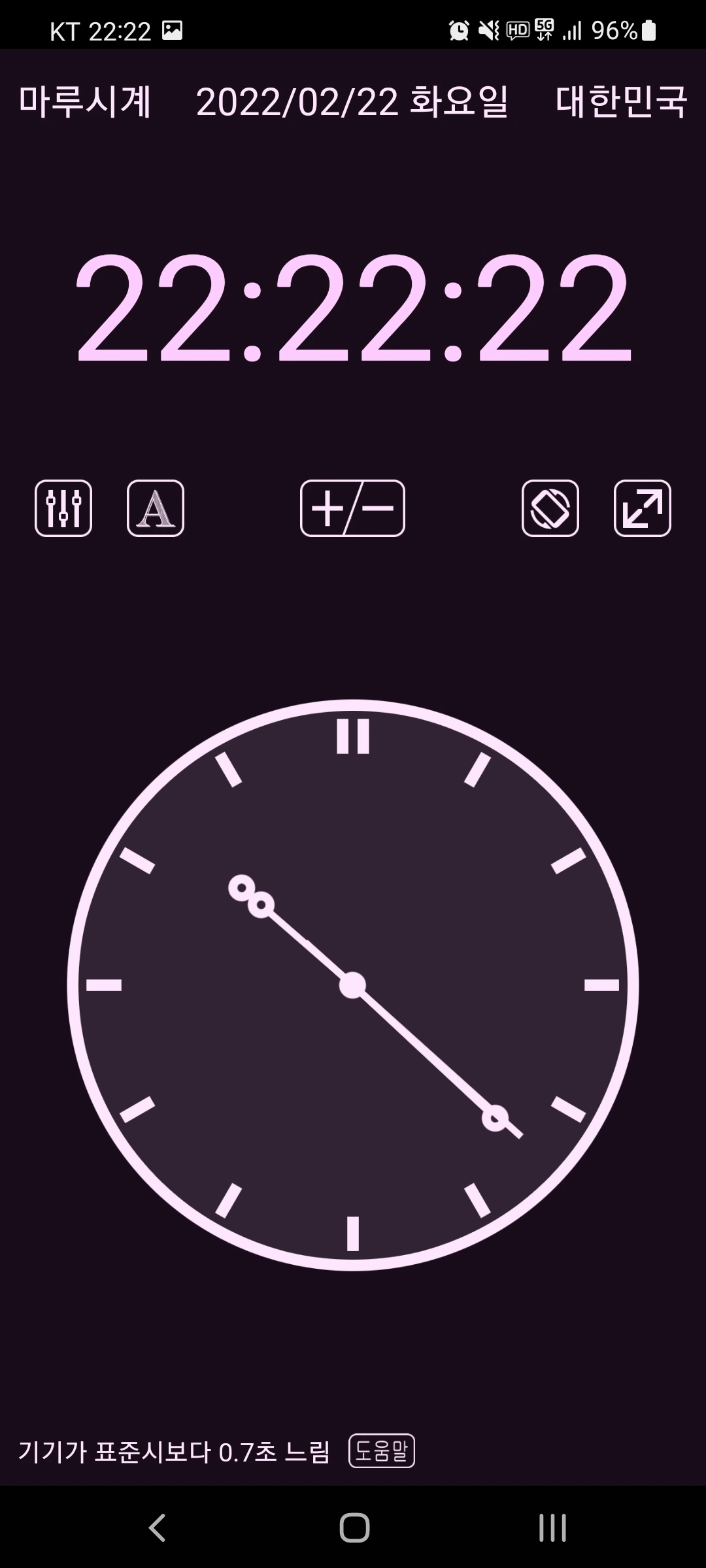 22시 22분 22초