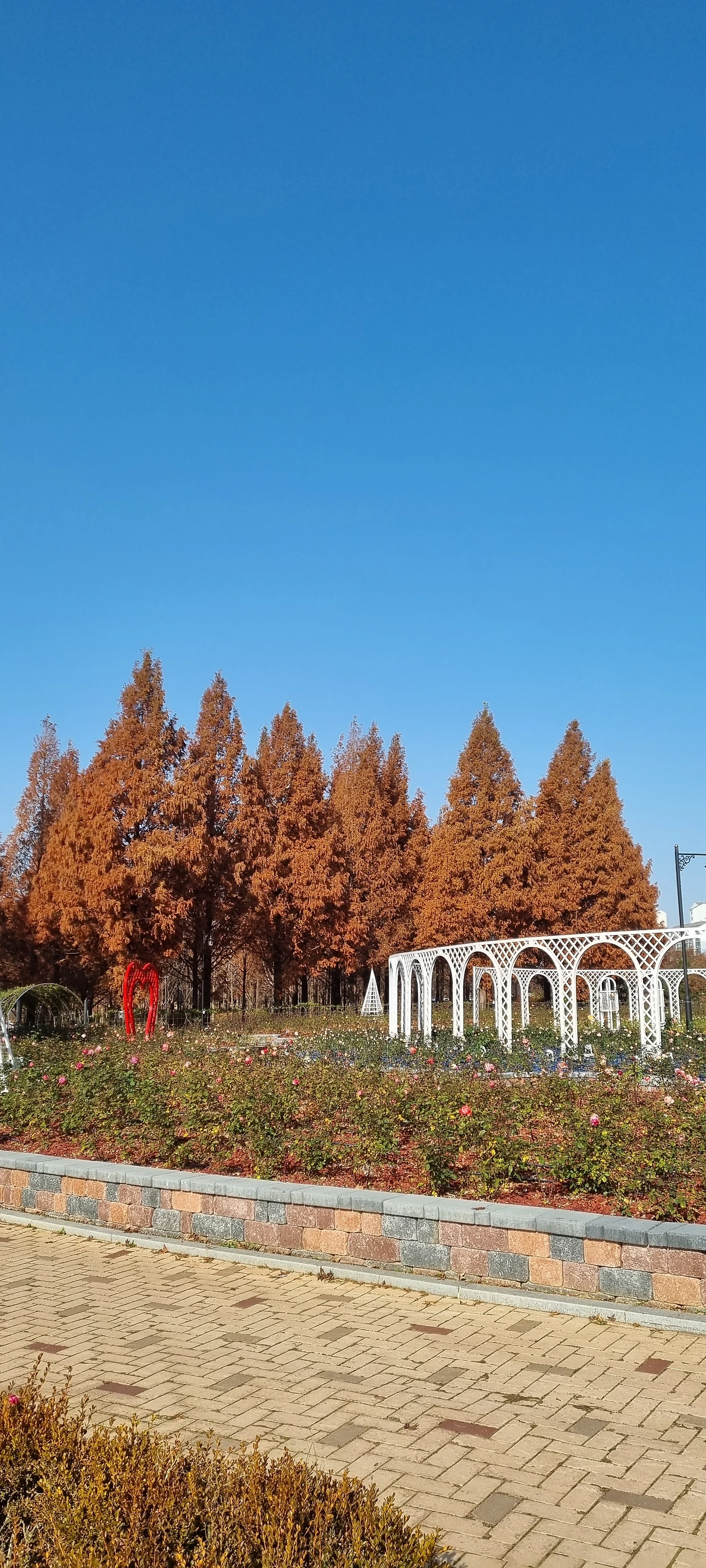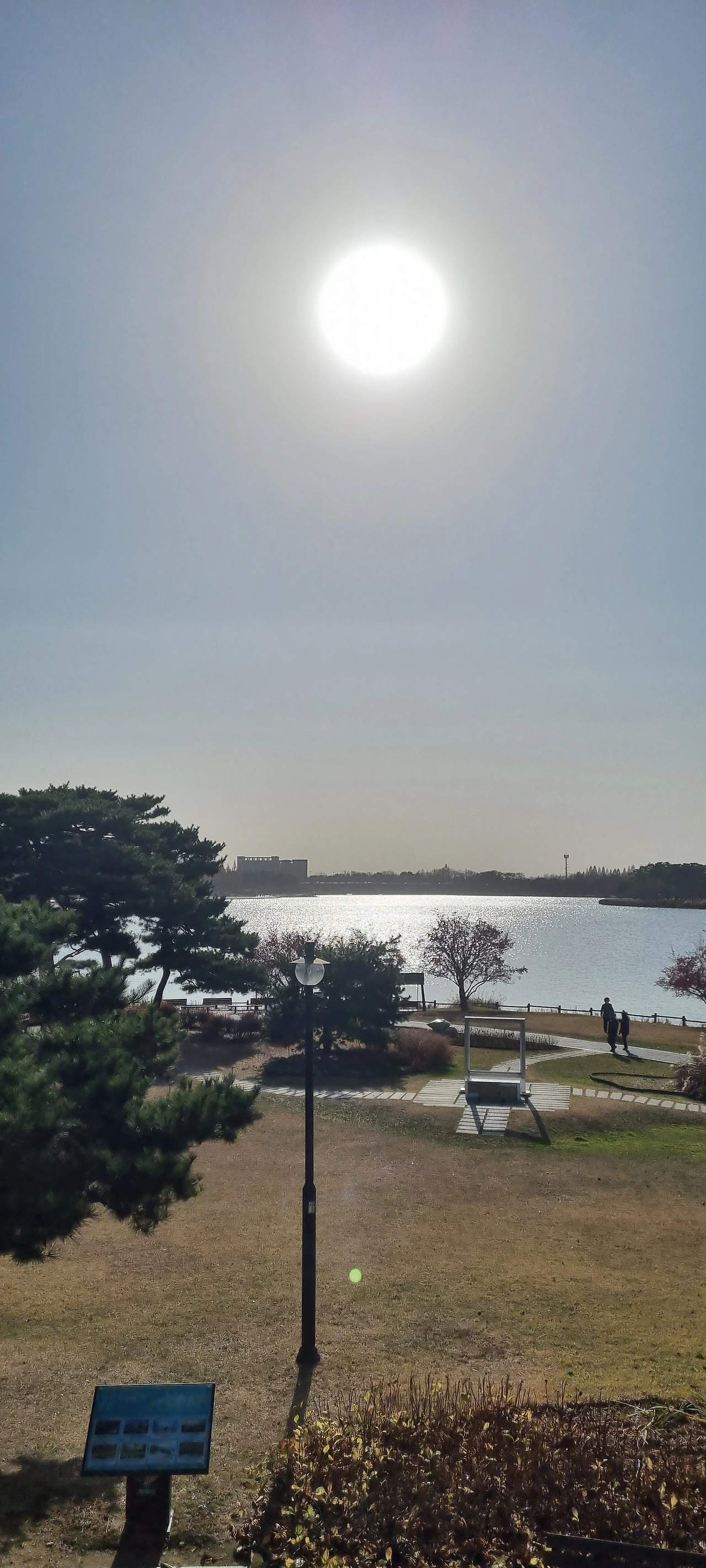 역시 이쁜 날이었다 | 내가 아는 공원 중 가장 깨끗하고 바깥 풍경이 이쁜 화장실이 있는 곳. 다시 일산 호수공원을 찾았다. 화장실 옥상 전망대에 올라가니 노란색 자전거 2대가 놓인 포토존이