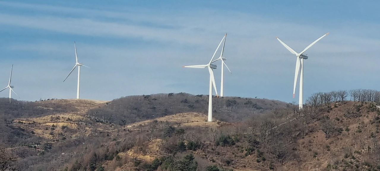 저 멀리 힘차게 도는 풍력 발전기 너머가 목장이란다.