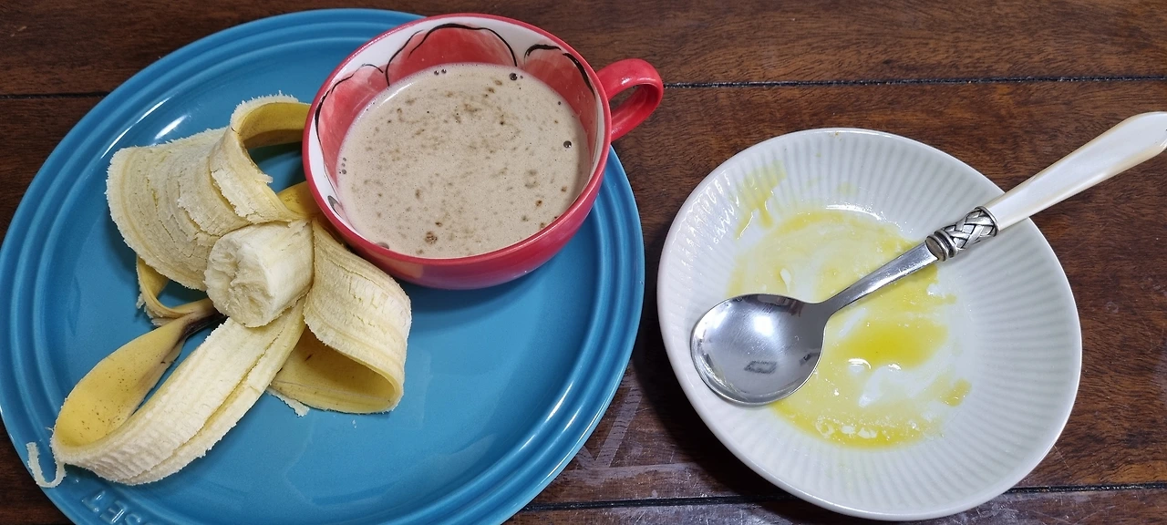 수저로 조심조심 노른자를 떠 보려고 하는데