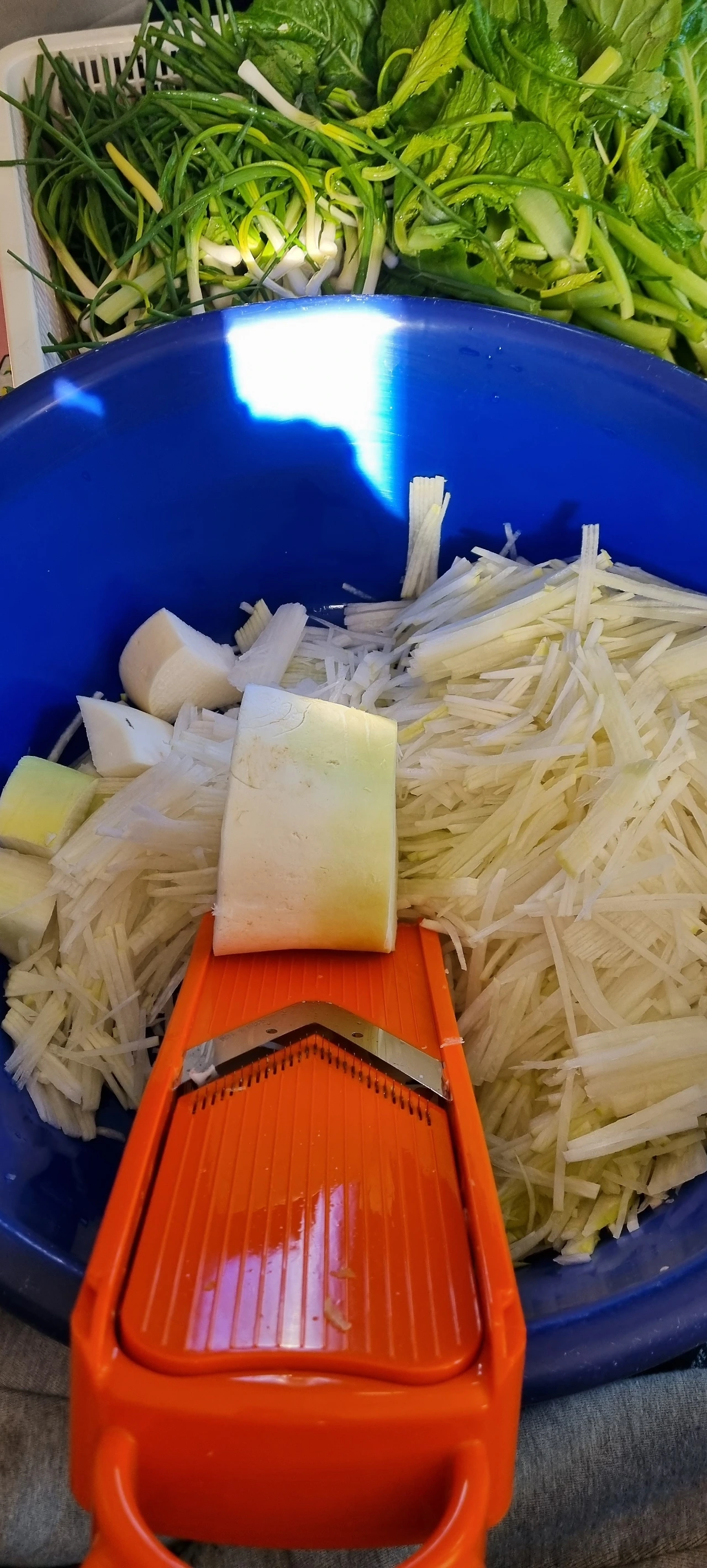 썰어둔 갓과 파에 무채까지 다 넣고 마무리하고 나니