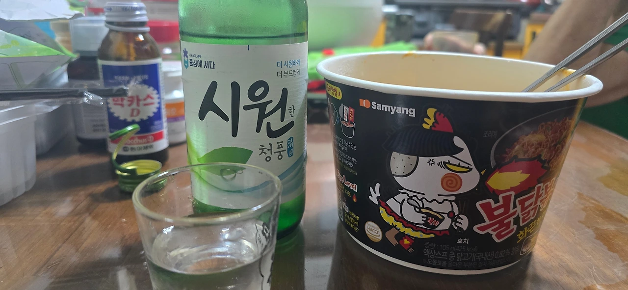 혼자 불닭볶음면에 소주 한 병을 마신 터였다.