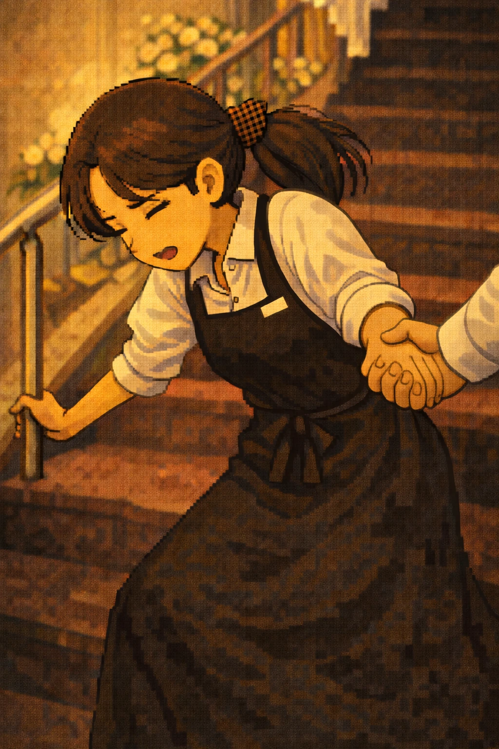 마지막 계단을 서둘러 내려가는 중, 정아는 갑자기 거칠게 내 팔을 잡아당겼다 놓았고. 나는 중심을 잃고 비틀거리기 시작했다. 정아는 빨리 안 오냐고 재촉하고 있었고, 나는 발을 헛디디며 넘어지지 직전이었다.