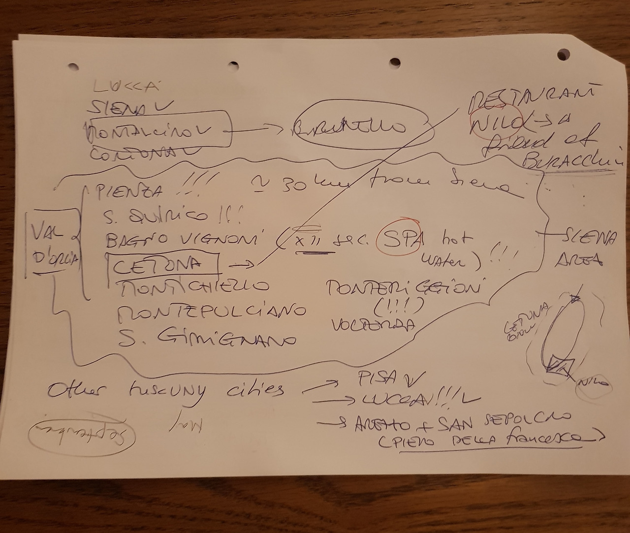 토리노에서 만난 Val d'Orcia 출신의 TIM 기술자 아저씨와 그가 잔뜩 적어준 고향의 명소들