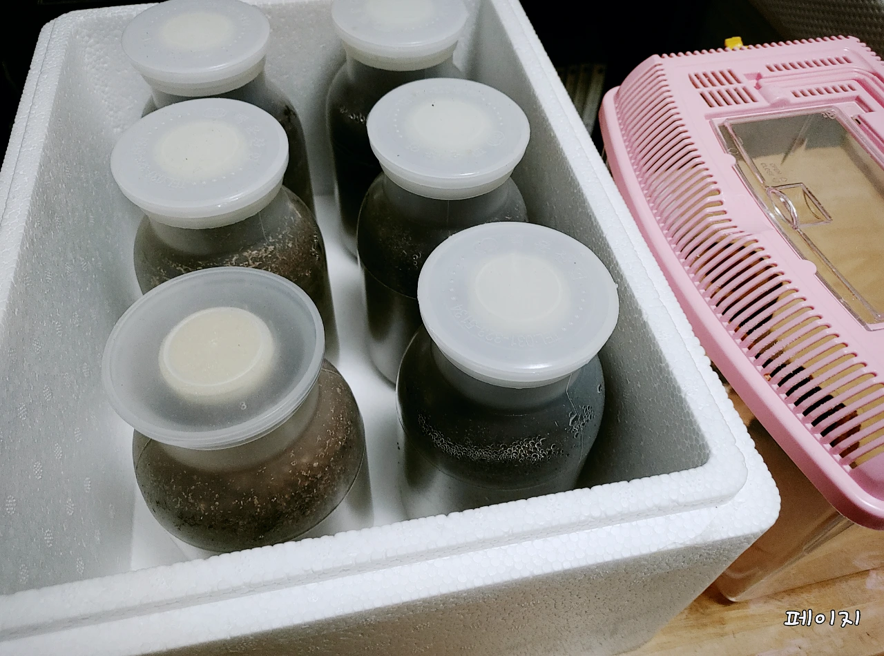 방에서 키우고 있는 열다섯 마리 애벌레 때문이었다. 발효톱밥을 채운 열다섯 개 플라스틱 통에서 각자 기나긴 잠을 자는 열다섯 마리 애벌레들. 작년 늦가을, 알에서 애벌레가 된 녀석들은 톱밥 속에서 자다 먹다를 반복하며 무럭무럭 자라고 있는 중이다.