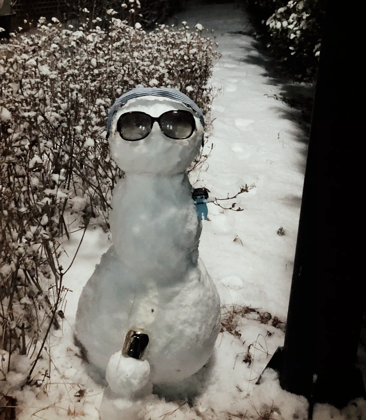 밤새 얼어붙은 추위 속에서 눈사람은 힘을 얻고 더 단단해질 것이다. 내일이 되면 장난꾸러기들의 발차기에 부서지거나 한낮의 햇빛이 녹아내릴지도 모르지만.