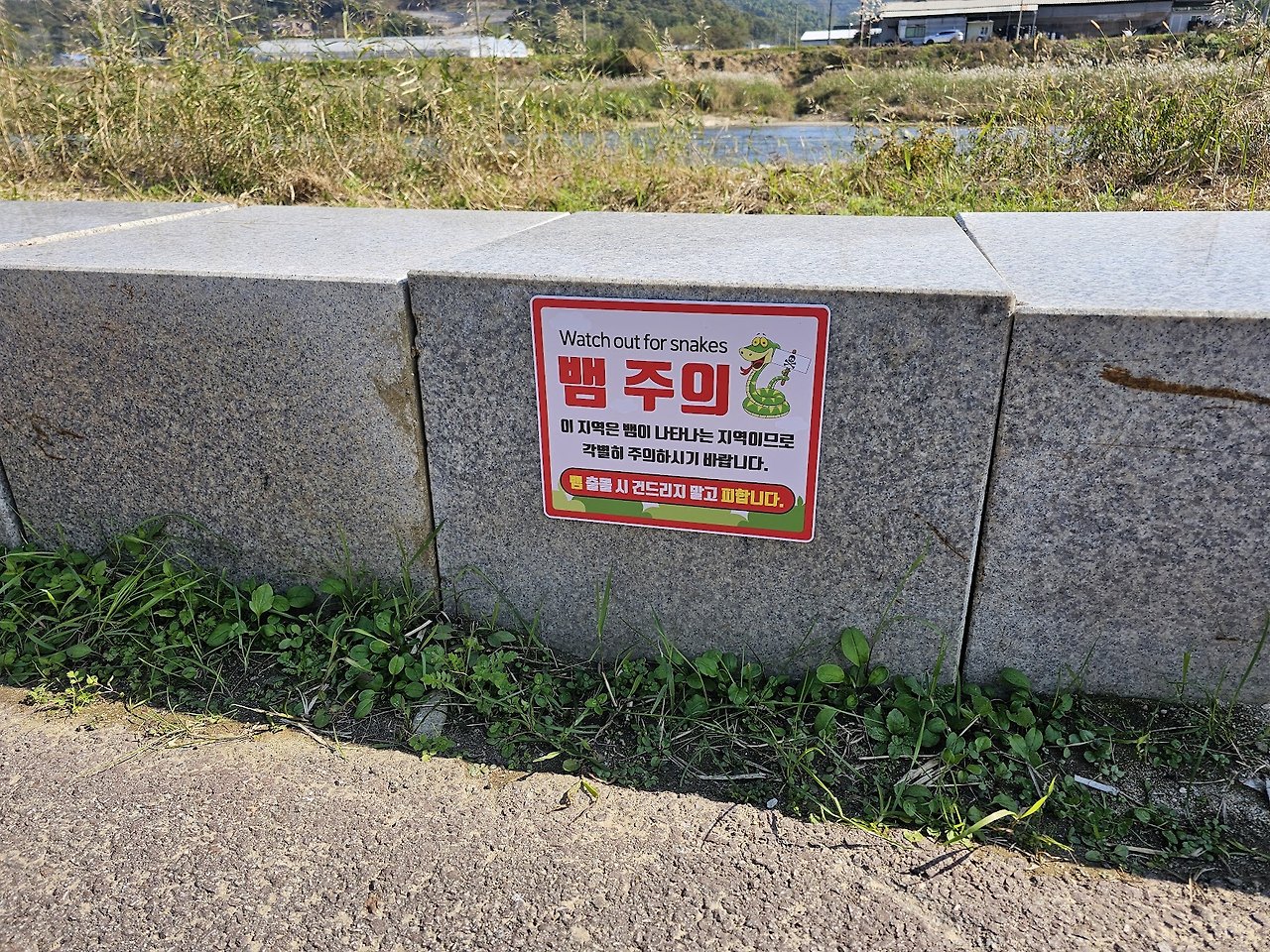 뉴스에서 보도된 대로 날씨가 갑작스럽게 추워졌습니다. 이 때문에 단풍이 들기도 전에 은행나무 잎사귀들이 초록색인 채로 바닥에 많이 떨어져 있었습니다. 노란 은행잎으로 뒤덮인 길을 바삭 거리는 소리와 함께 걸을 것으로 예상했는데, 덜 마른 초록잎만 잔뜩 구경했습니다. 여행길 중 포천 구간은 강변길 조성이 잘 되어 있어 기분 좋게 걸을 수 있었으나, 연천에는 아직 그런 길이 많지 않았습니다. 인도보다는 도로를 많이 걸었습니다. 길에서 아주 작은 아기 뱀 한 마리를 보기도 했습니다. 뱀은 사람이 먼저 건드리지 않으면 공격하지 않겠지만, 보게 되면 깜짝 놀랍니다. 특히 겨울잠을 자기 직전인 이 시기에는 뱀을 조심해야 합니다.