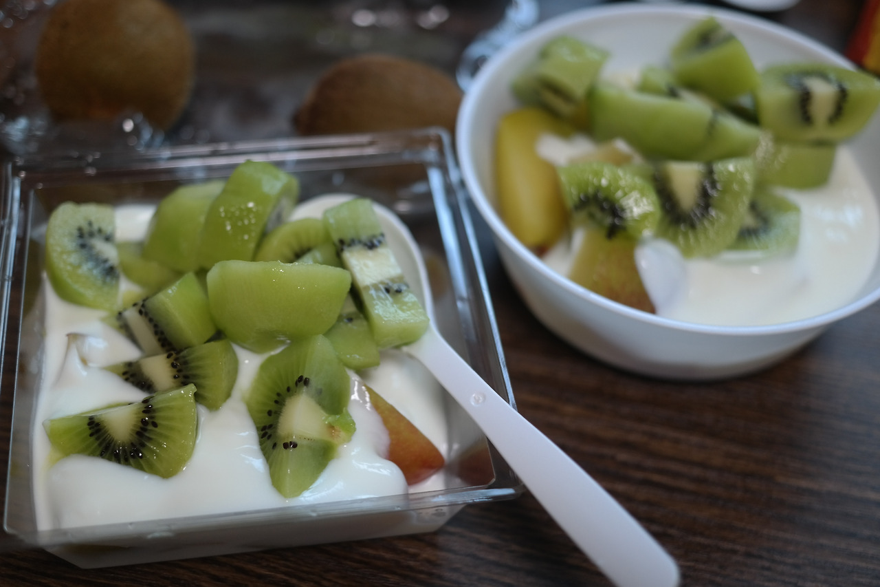 달콤한 키위와 시큼한 자두의 요거트 범벅. 완벽한 아침상이었다.
