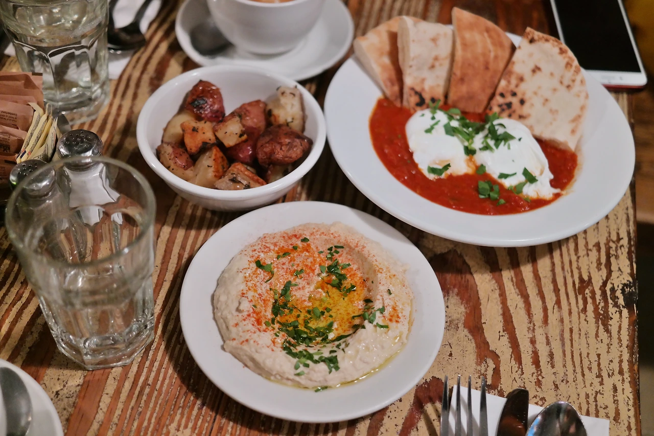 우리는 후무스(Hummus)를 주문해 나눠 먹었다. 두꺼운 두께의 피타 브레드를 후무스에 듬뿍 찍어 먹으면 없던 입맛도 다시 살아왔다. 물론, 입맛이 없다는 것 따위는 나에게 해당되지 않는다. 병아리콩 등 다른 재료들을 섞은 후무스는 제법 양이 많았다. 사이드 메뉴로 나온 감자도 후무스에 찍어 맛있게 먹었다.