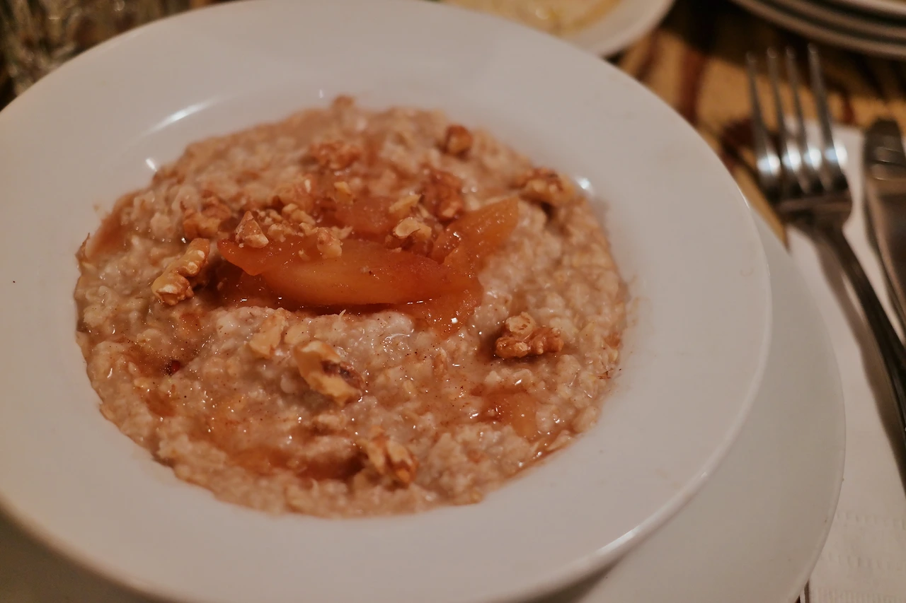 첫 방문 날(빌고 빌었던 날.) 나는 다른 브런치 식당에서 기본으로 먹을 수 있는 오트밀을 먹었다. 위에 사과 절임이 얹어 있어 맛있었다.