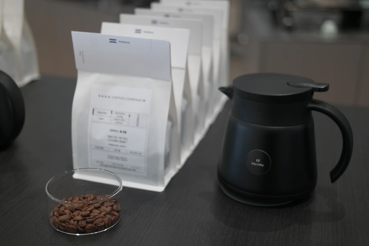수안커피에서 주문은 키오스크가 받는다. 나는 성질이 급한 편이라 들어가자마자 주문했지만, 카운터에서 누가 주문을 기다리는 시스템이 아니라서 천천히 ‘시음!’을 한 뒤 정할 수 있다. 이 시음은 어메이징 한데 원두를 다 먹어볼 수 있다. 추출 방식에 따라 맛이 달라지기 때문에 그런 차이를 맛으로 느낄 수 있는 재미도 있다. 커피를 사랑한다면 여긴 곧 천국이 아닐까 싶다. 마침내 입에 착 감기는 커피를 찾아냈을 때의 성취감이란. 이루 말할 수 없을 것 같았다.