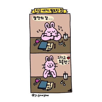 잠들기 전, 둥둥 떠다니는 생각을 그리는 김토끼입니다! 인스타그램에 매일 새 그림이 올라갑니다^0^/ (@js_glowglow)