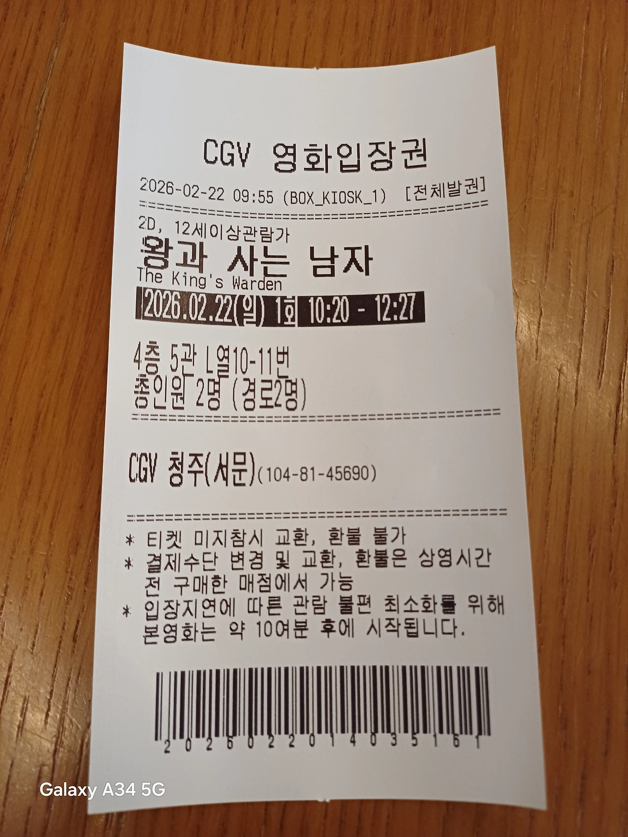 아내와 함께 ‘왕과 사는 남자’를 관람했다.