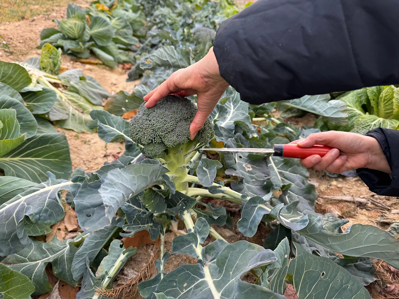 싱그러운 배추 하나, 브로콜리 하나를 싹둑 잘라 가져 왔다.