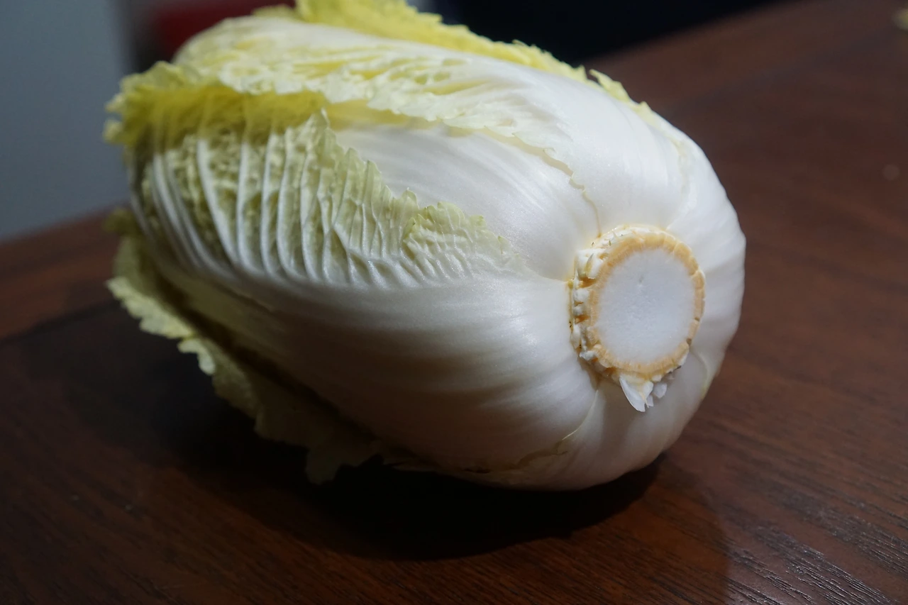 어찌나 추웠는지 배추 밑동이 얼어있다.