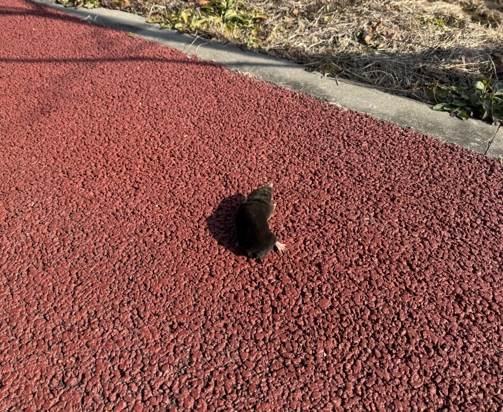 작은 두더지 한 마리가 길 위에서 머뭇거리고 있었다.