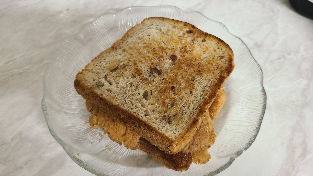 "구운 식빵을 접시에 걸쳐놓아야 빠삭함이 유지되지."