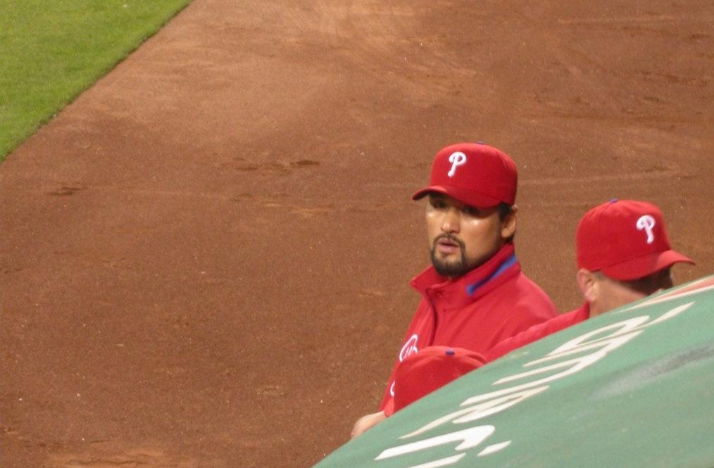 2009년 8월 샌프란시스코와 샌디에이고 파드레스의 경기 중 불펜에 나온 박찬호 선수(AT & T 파크)