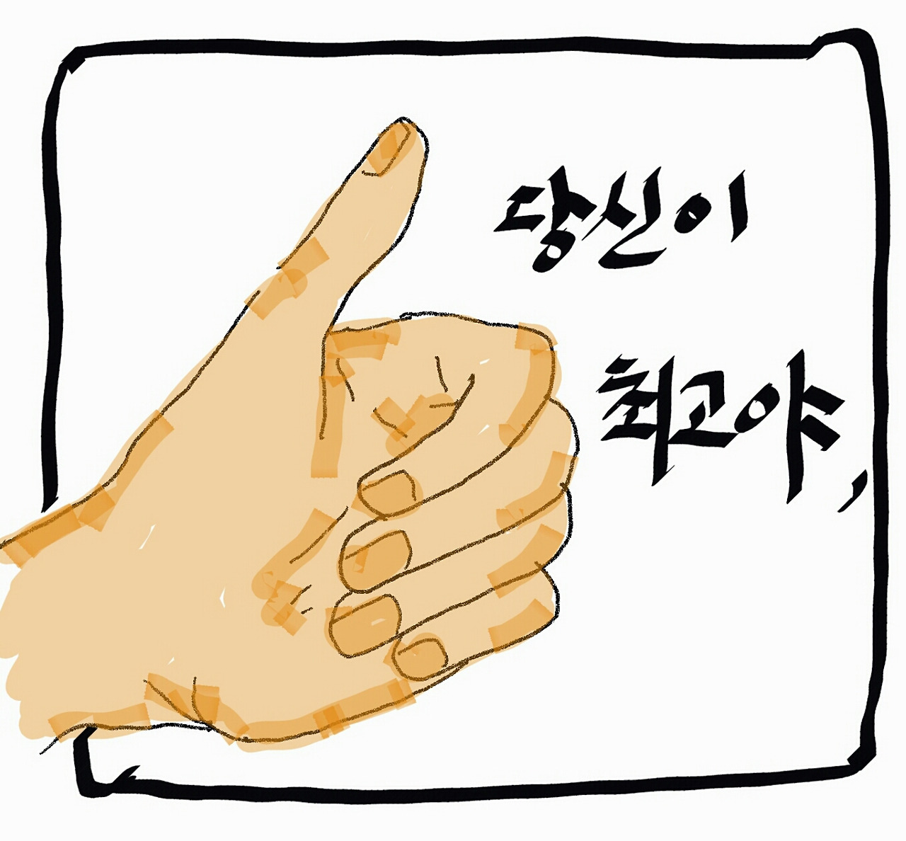 그 중 우리가 가장 많이 쓰는 말은 "당신이 최고야"이다. 좀 더 정확하게 표현하자면 "끼(이전 글에서 밝혔듯 우리의 애칭이다)가 짱이야"라며 엄지손가락을 치켜드는 것이 우리의 가장 흔한 대화다.