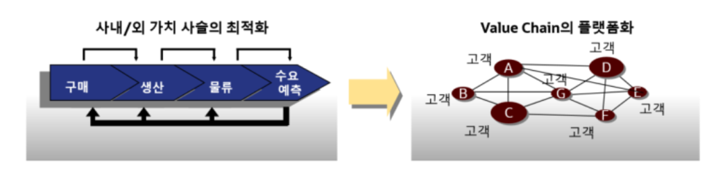 또한 가치사슬의 플랫폼화 과정에서는 '빅데이터', 'AI', 'IoT', 'AR/VR', '디지털 트원', ' AI 에이전트', '블록체인', '로봇 피지컬 AI', '스마트 펙토리' 등 다양한 디지털 기술들이 적용되어 가치 창출 방식을 혁신적으로 변화시키고 있습니다.