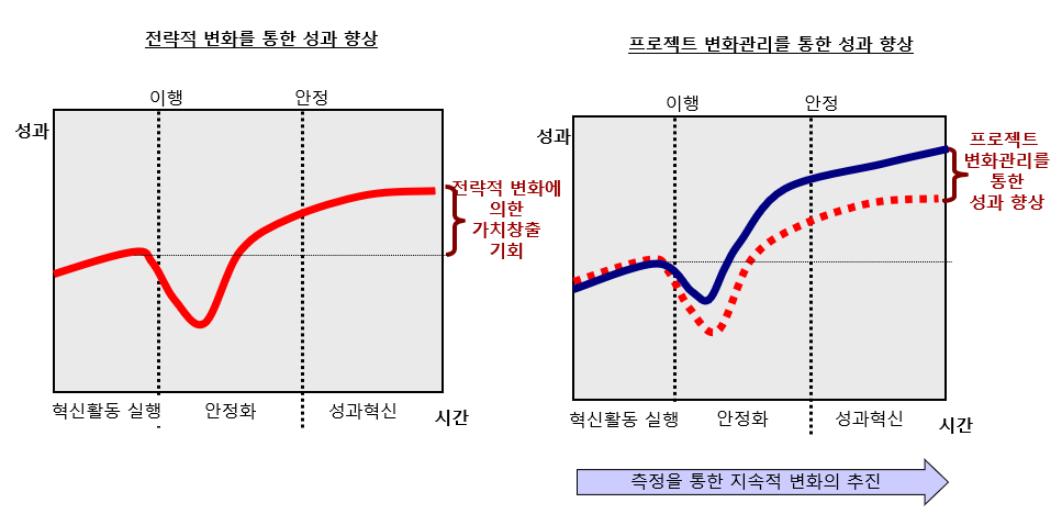 4. 두가지 변화전략의 성과 : 전략적 변화 Vs. 프로젝트 변화관리