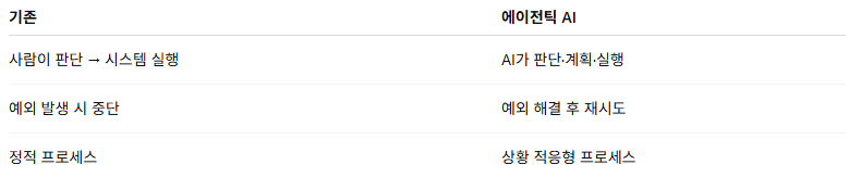 에이전틱 AI는 단순한 도구(tool)가 아니라 , 목표를 이해하고, 계획하고, 행동하는 실행 주체(agent)가 됩니다.