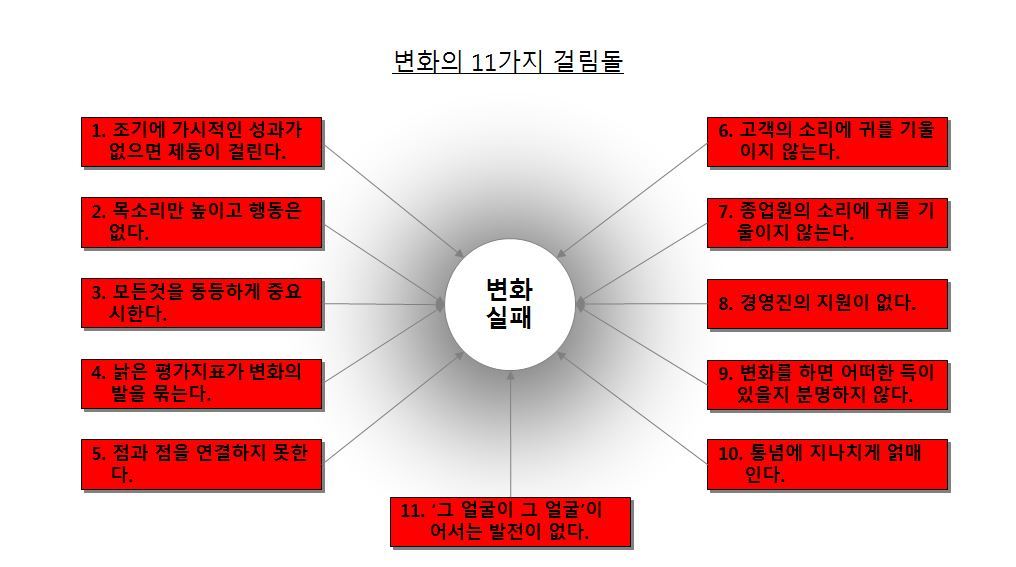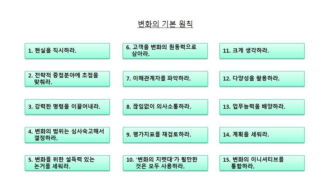 따라서 전사적으로 의미 있는 성과를 낼 수 있는 핵심 영역을 중심으로 변화 범위를 설정할 필요가 있습니다.