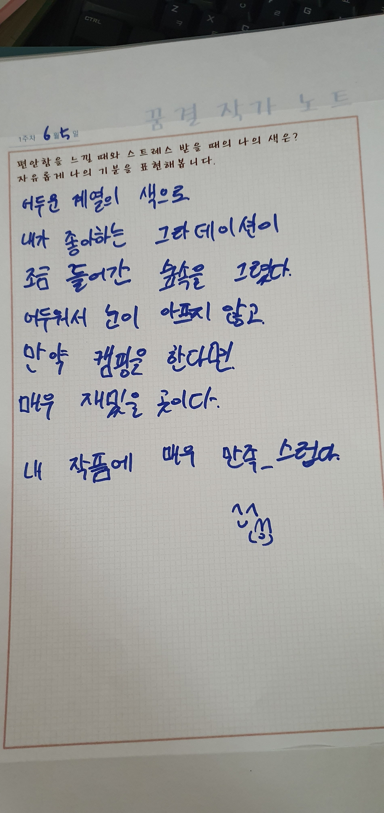 나는 어떨 때 편안하지? 스트레스 받지? 지금 나는 무엇을 표현해보고 싶지? 나는 지금 무슨 생각을 하고 있지?