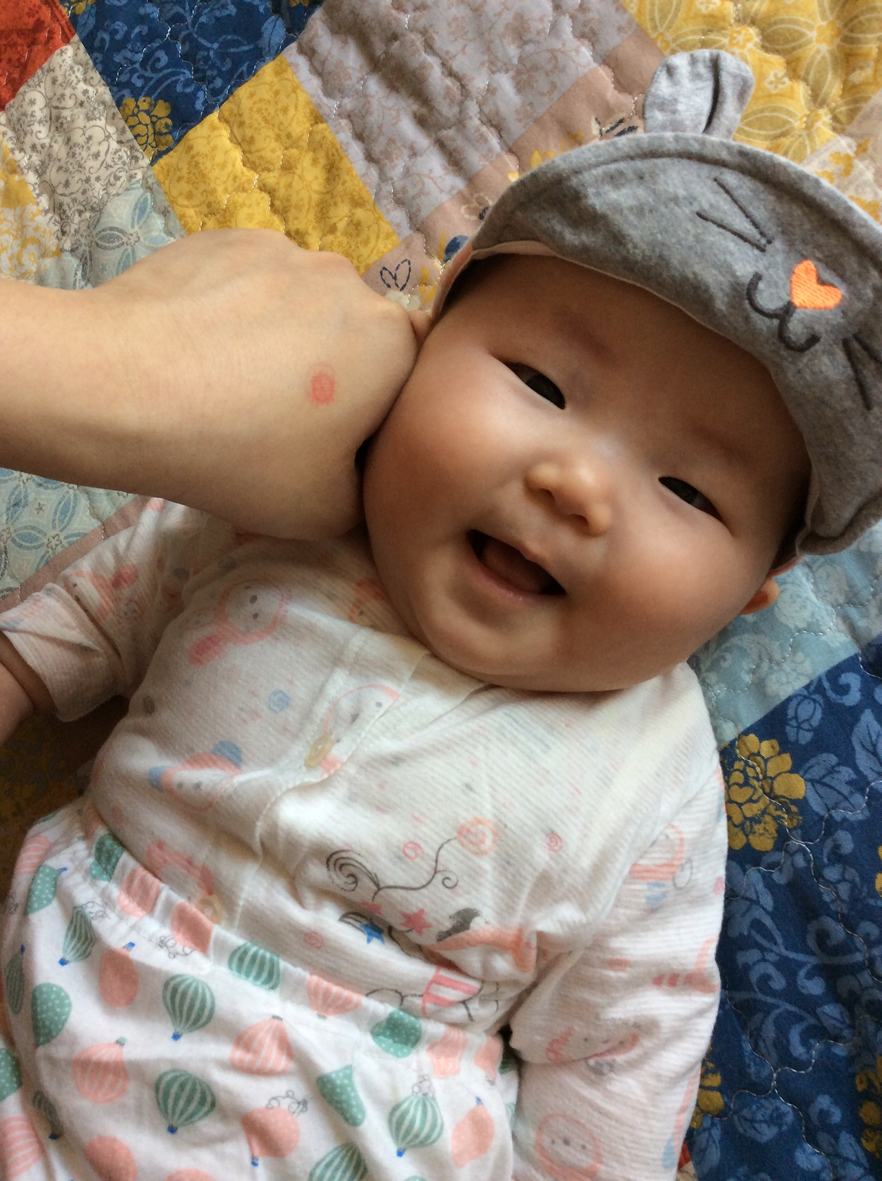 아직 목을 완전 가누지 못해서 자꾸 얼굴이 앞으로 푹 숙여지는 것도